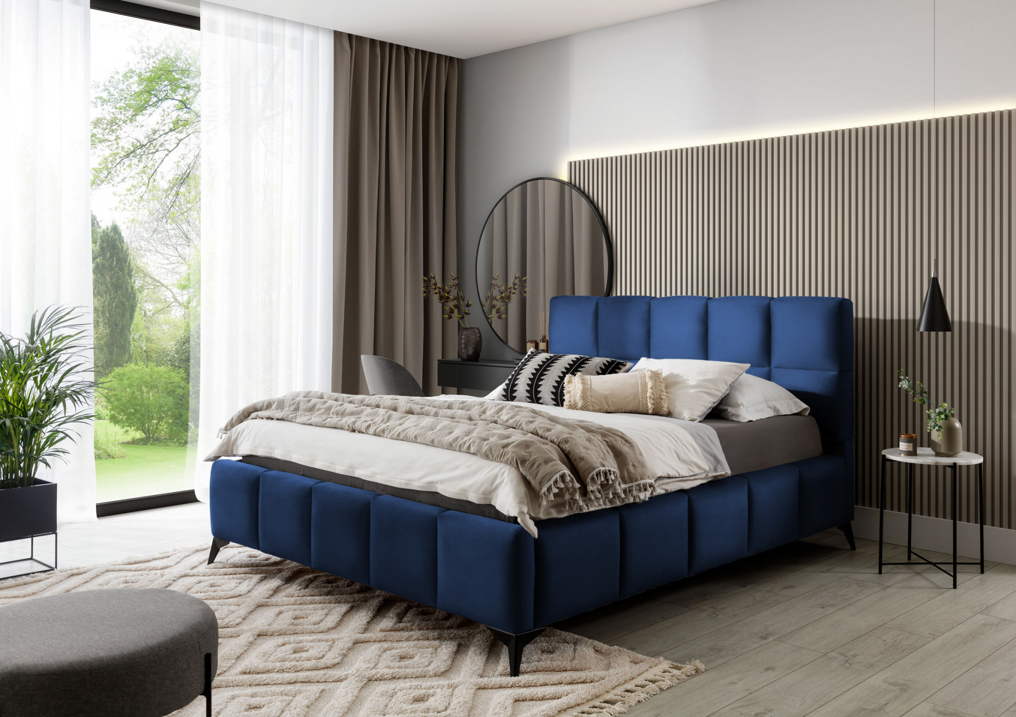 Posteľ Mist je kombináciou moderného dizajnu a glamour štýlu, ktorá prináša nádych elegancie do každej spálne. Opierka hlavy má mäkkú penovú výplň potiahnutú vysoko kvalitným čalúnením. Prešívanie, ktoré zdobí posteľ Mist, pridáva štýl a charakter a prináša nádych modernosti.Nábytok je k dispozícii v troch šírkach spacie plochy: 140, 160, 180 x 200 centimetrov. To uľahčuje prispôsobenie postele podmienkam v byte. Čierne oceľové nohy s dĺžkou až 13.5 centimetrov vytvára dojem, že posteľ sa vznáša nad zemou, čo ďalej opticky zväčšuje miestnosť, v ktorej bude posteľ Mist umiestnená. Okrem toho je nábytok tiež vybavený úložným priestorom na posteľnú bielizeň, čo je veľmi dobré riešenie pre malé priestory a umožňuje udržiavať spálňu upratanú.