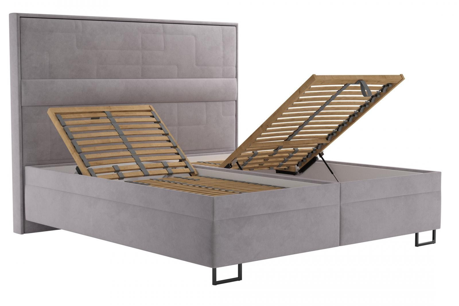 Úložný priestor postele sa otvára pomocou plynových piestov na nohách postele.