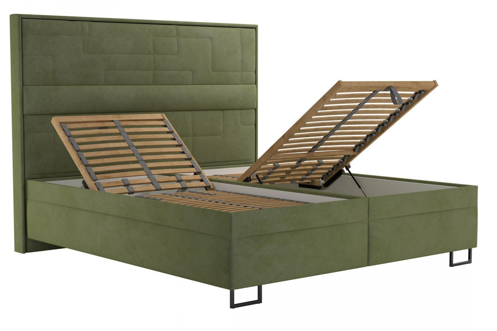 Úložný priestor postele sa otvára pomocou plynových piestov na nohách postele.