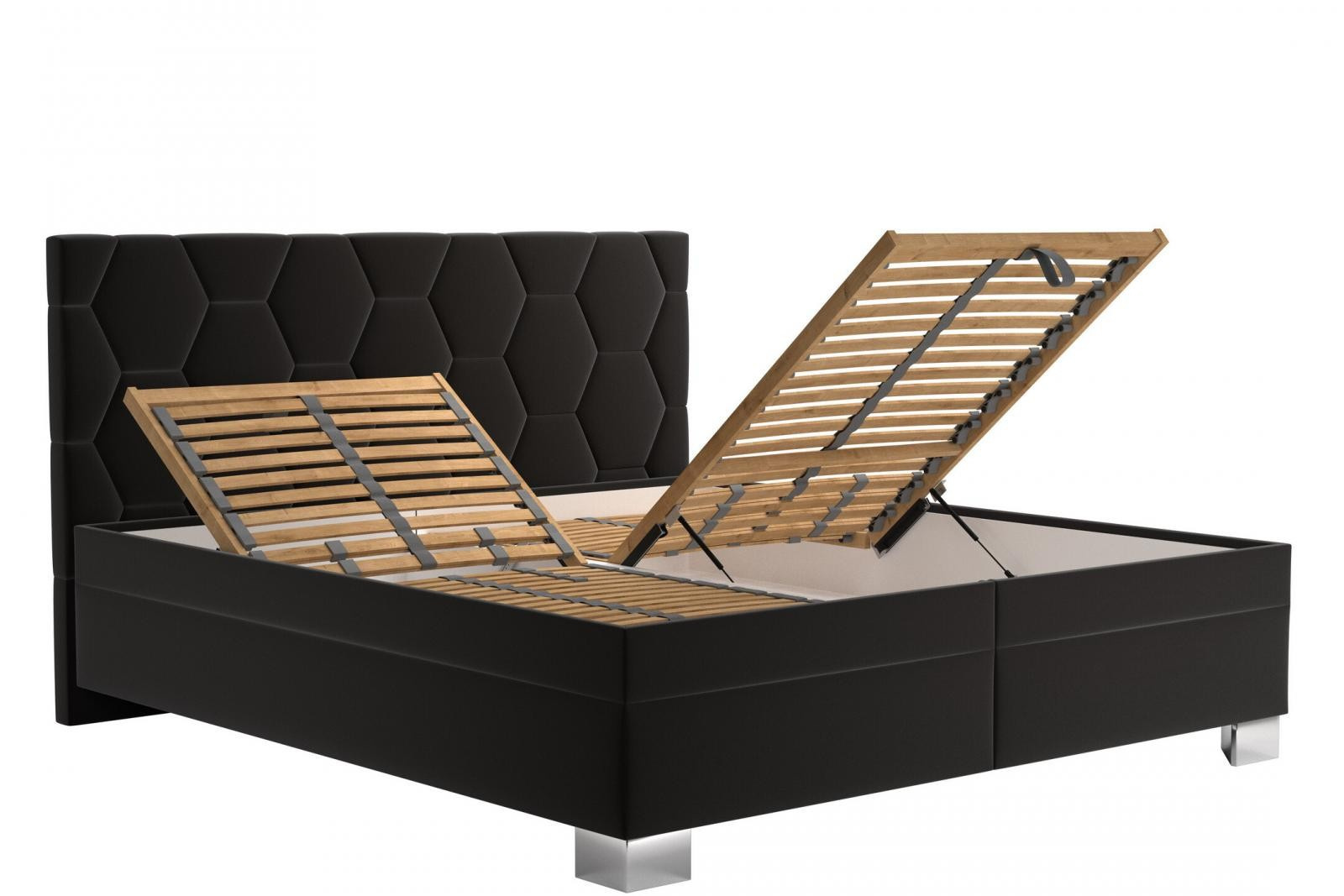 Úložný priestor postele sa otvára pomocou plynových piestov na nohách postele.