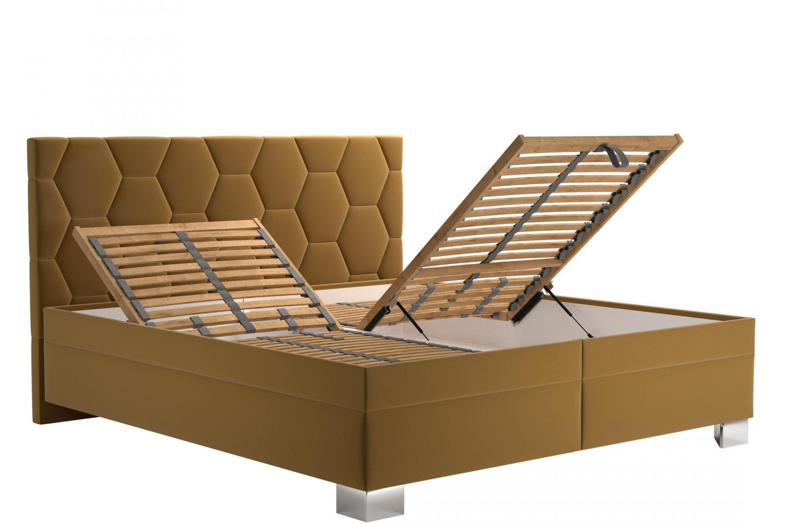 Úložný priestor postele sa otvára pomocou plynových piestov na nohách postele.