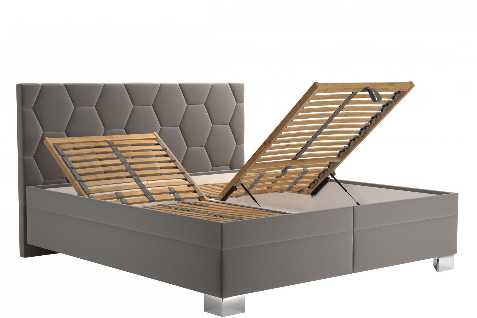 Posteľ Pamela sa môže pochváliť dôkladným remeselným spracovaním s osobitým dizajnom. Táto posteľ vám poskytne príjemnú oázu na odpočinok a ráno budete vstávať príjemne oddýchnutí a svieži. V cene sú zahrnuté lamelové rošty s piestami a veľmi pohodlný matrac s výškou 21 cm. Rošty majú 28 lamiel s nastaviteľnou tuhosťou, mechanické polohovanie hlavy a nôh a popruh proti preťaženiu. Matrac má konštrukciu so špeciálne štruktúrovaným povrchom, ktorý zaručuje vynikajúce prispôsobenie sa vášmu telu počas spánku. Vďaka špeciálnemu spojovaciemu systému je matrac vyrobený bez použitia lepidiel. jadro sa skladá z panelov z polyuretánovej peny s nižšou (žltá pena) a vyššou (ružová pena) tuhosťou, takže si môžete vybrať stranu, ktorá najlepšie vyhovuje vášmu pohodliu pri spánku. Matrac je vybavený kvalitným snímateľným poťahom, ktorý je možné prať pri 60 stupňoch Celzia. Posteľ je tiež vybavená veľkým úložným priestorom, ktorý je prístupný z čela postele.