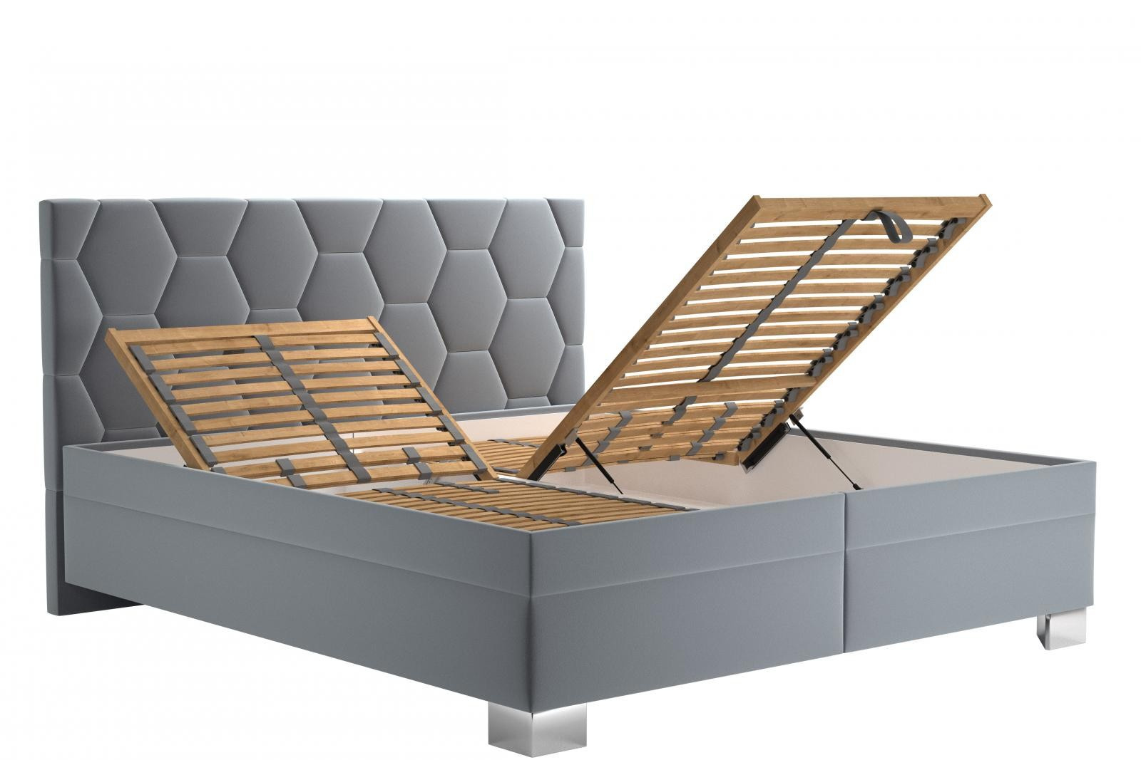 Posteľ Pamela sa môže pochváliť dôkladným remeselným spracovaním s osobitým dizajnom. Táto posteľ vám poskytne príjemnú oázu na odpočinok a ráno budete vstávať príjemne oddýchnutí a svieži. V cene sú zahrnuté lamelové rošty s piestami a veľmi pohodlný matrac s výškou 21 cm. Rošty majú 28 lamiel s nastaviteľnou tuhosťou, mechanické polohovanie hlavy a nôh a popruh proti preťaženiu. Matrac má konštrukciu so špeciálne štruktúrovaným povrchom, ktorý zaručuje vynikajúce prispôsobenie sa vášmu telu počas spánku. Vďaka špeciálnemu spojovaciemu systému je matrac vyrobený bez použitia lepidiel. jadro sa skladá z panelov z polyuretánovej peny s nižšou (žltá pena) a vyššou (ružová pena) tuhosťou, takže si môžete vybrať stranu, ktorá najlepšie vyhovuje vášmu pohodliu pri spánku. Matrac je vybavený kvalitným snímateľným poťahom, ktorý je možné prať pri 60 stupňoch Celzia. Posteľ je tiež vybavená veľkým úložným priestorom, ktorý je prístupný z čela postele.