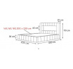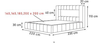 Dĺžka: 230 cm Výška čela: 110 cm Výška sedadla: 30 cm Plocha na spanie: 160/200 cm Posteľ má kovový rám, LED osvetlenie, pohyblivé čelo a úložný priestor na posteľnú bielizeň