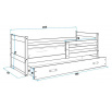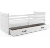 Detská posteľ Riky je určená pre tých, ktorí pre svoje dieťa hľadajú funkčnosť, moderný dizajn a kvalitu. Posteľ je vyrobená z borovicového dreva v kombinácii s MDF doskami (farebné panely na bokoch postele). Stabilná konštrukcia, zaoblené hrany a zábrana, ktorá je v cene postele, zaisťujú bezpečnosť a pohodlie dieťaťa. Zábranu môžete podľa potreby umiestniť na pravú alebo ľavú stranu postele. Súčasťou postele je aj praktický úložný priestor na kolieskach, rošt a penový matrac so snímateľným poťahom. Hrúbka matraca je 7 cm. plocha na spanie je 90x200 cm. Posteľ sa dodáva v demontovanom stave a obsahuje montážny plán vrátane všetkých potrebných spojovacích prvkov. Zobrazené dekorácie nie sú zahrnuté v cene. Zobrazenie farieb na fotografii sa môže mierne líšiť od skutočnej farby.