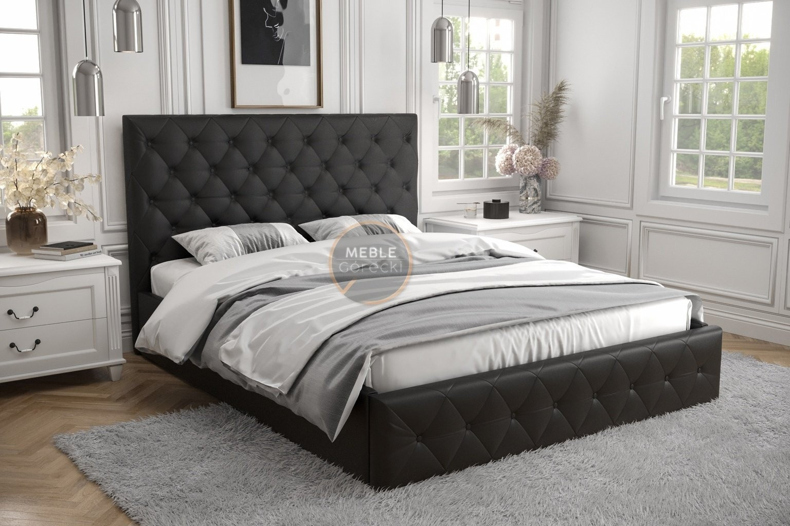 Posteľ ROMA - 200x200, Drevená, čierna eko koža