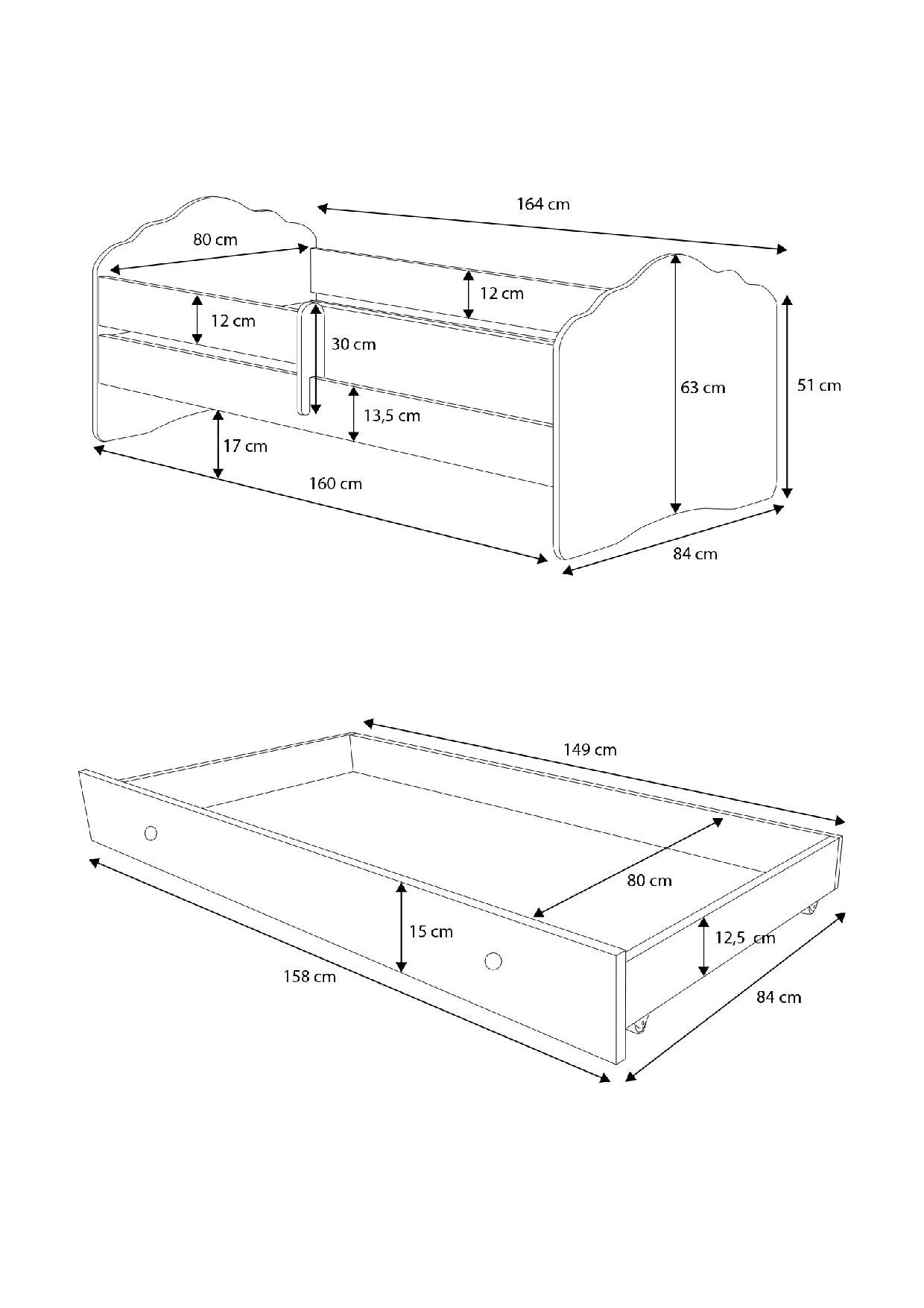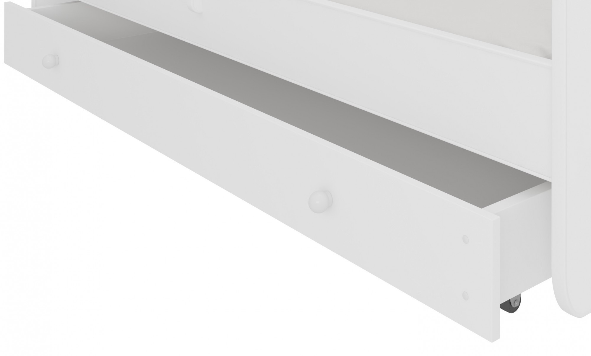 Jednolôžková posteľ z kolekcie CASIMO s jednoduchým tvarom v matnej bielej farbe sa skvele hodí do interiéru detskej izby. Vďaka veľkému výberu grafík ľahko vyberieš model, ktorý najlepšie zodpovedá záujmom tvojho dieťaťa. V procese výroby boli použité ekologické vodné farby, ktoré sú bezpečné a odolné voči mechanickému poškodeniu. Navyše posteľ nemá ostré rohy a grafika je chránená laminátom. Ďalšou výhodou je priestranná zásuvka na posteľnú bielizeň a tiež snímateľný poťah matraca na zips, ktorý možno ľahko zložiť a vyprať. Posteľ je možné doplniť o ochrannú zábranu, ktorá zaisťuje bezpečnosť počas spánku. Čo viac, ak potrebujete ďalšie miesto na spanie, odporúčame sa zoznámiť s modelom CASIMO II, ktorý má zásuvku s funkciou spania.