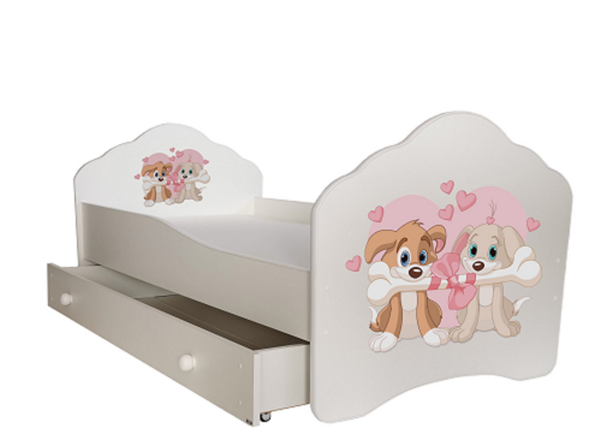 Posteľ s matracom a zásuvkou CASIMO TWO DOGS 160x80 Biela