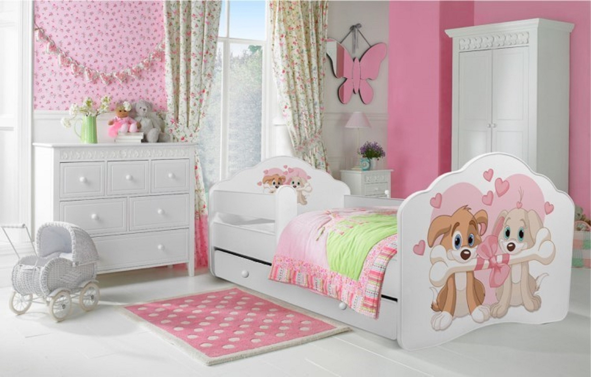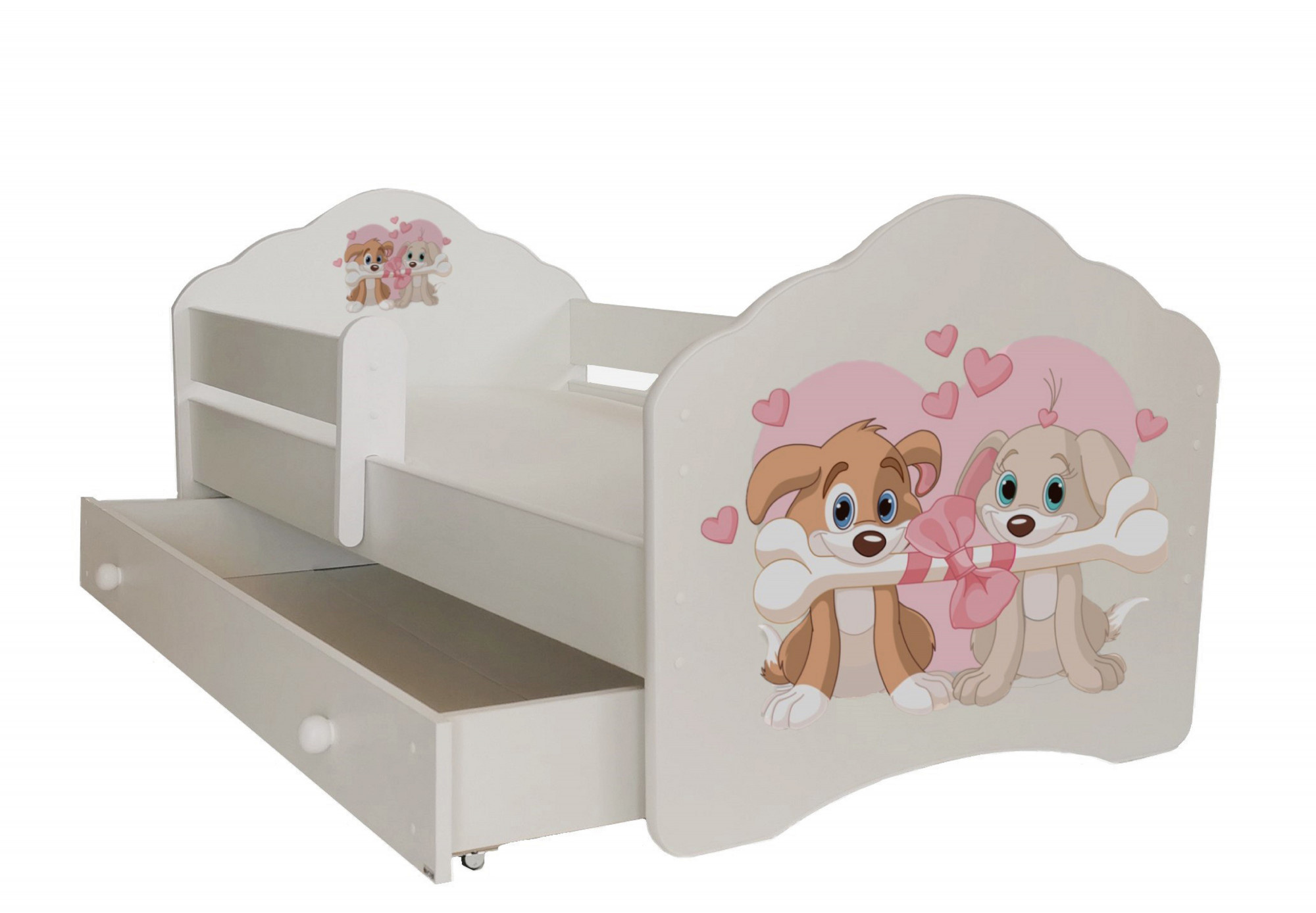 Posteľ s matracom, zábranou a šuplíkom CASIMO TWO DOGS 140x70 Biela