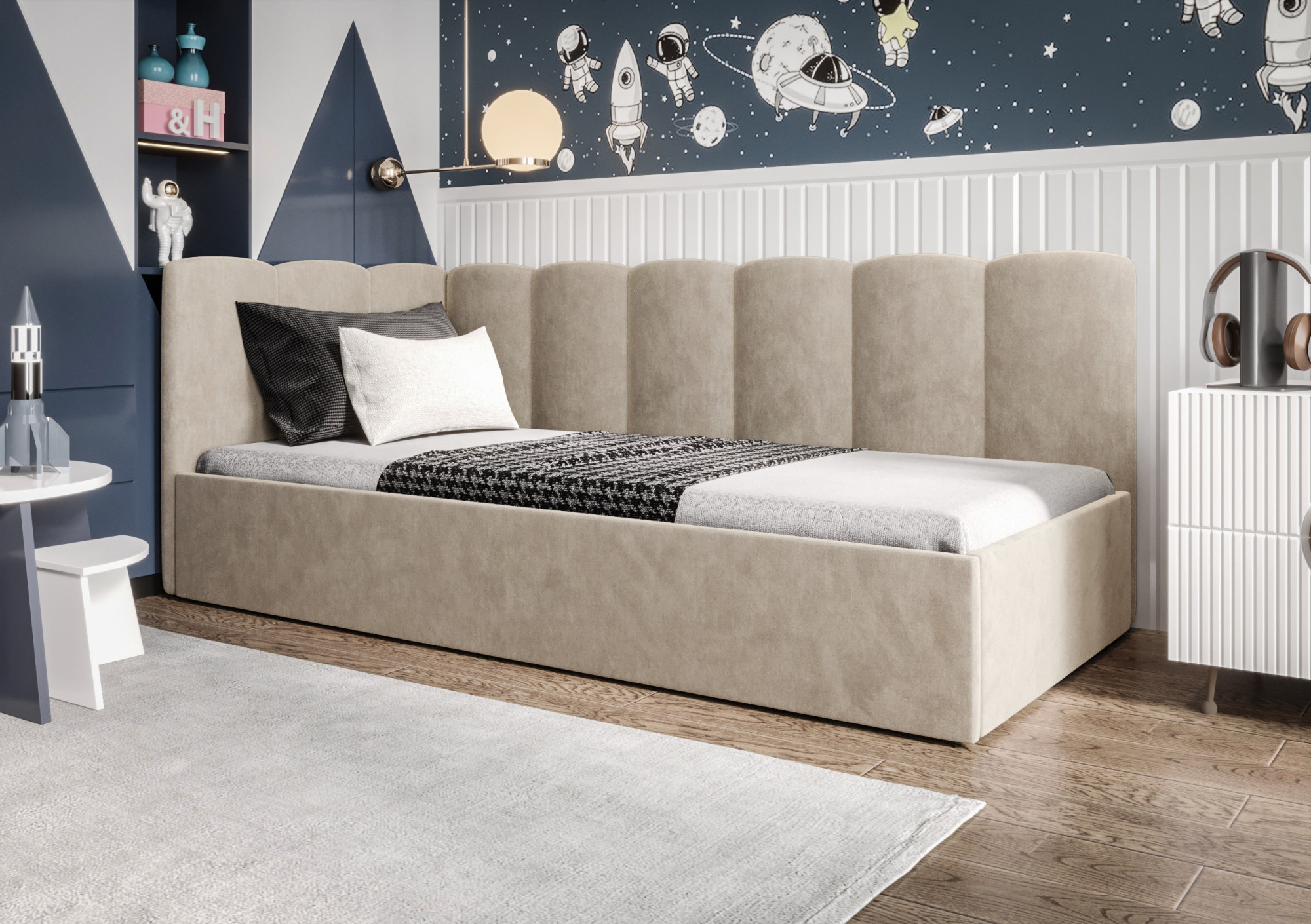 Čalúnená posteľ SIMBA je naším návrhom jednolôžkového modelu. Vytvorený s ohľadom na najmladších – skvele sa uplatní aj v izbe pre mládež, hotelovej alebo penziónovej izbe. Široký výber tkanín a farieb umožní prispôsobiť nábytok interiéru, ktorý zariaďujete. Už dnes sa postarajte o spánok svojho dieťaťa so značkou Meble Górecki.