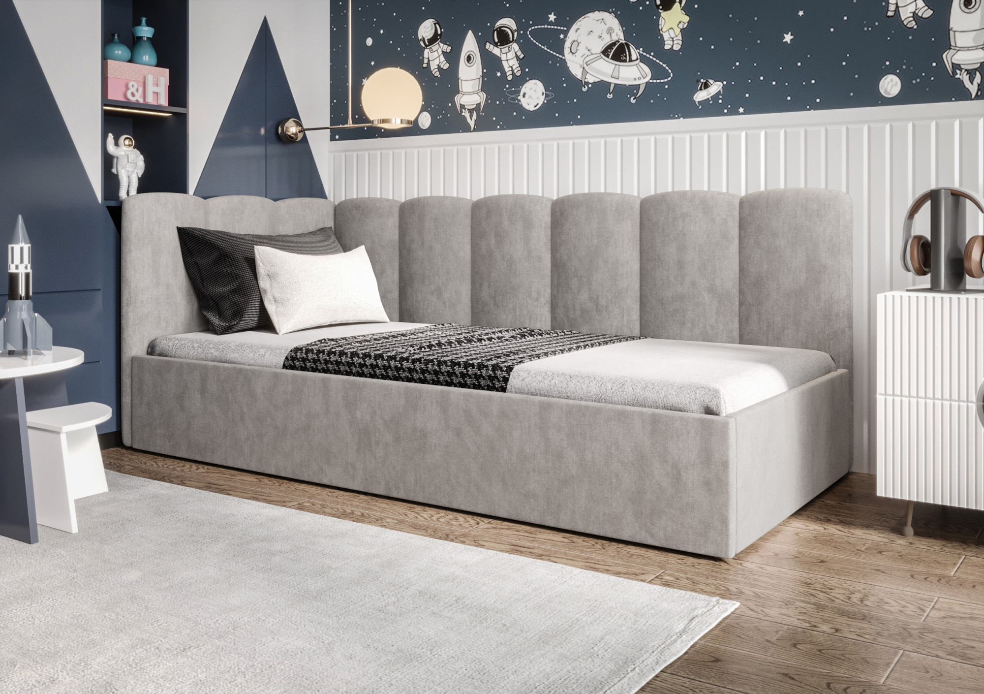 Čalúnená posteľ SIMBA je naším návrhom jednolôžkového modelu. Vytvorený s ohľadom na najmladších – skvele sa uplatní aj v izbe pre mládež, hotelovej alebo penziónovej izbe. Široký výber tkanín a farieb umožní prispôsobiť nábytok interiéru, ktorý zariaďujete. Už dnes sa postarajte o spánok svojho dieťaťa so značkou Meble Górecki.