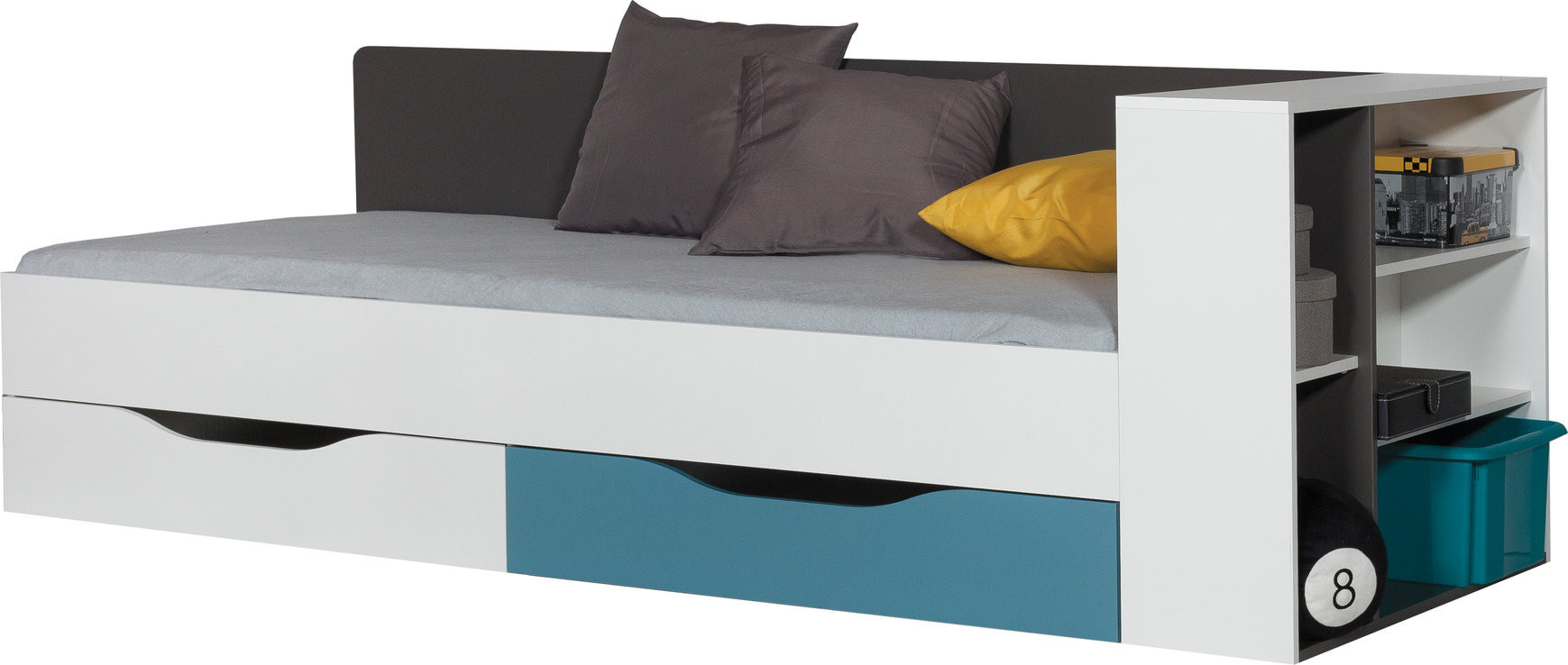 Posteľ TABLO - TA12A L/P, grafit + white lux + atlantic