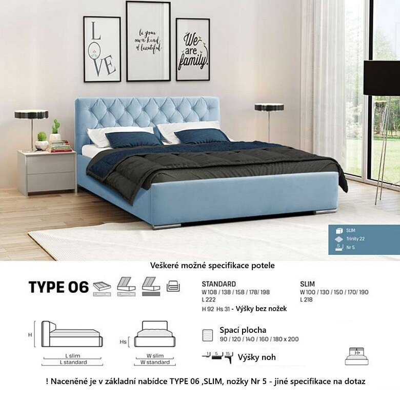 Posteľ TYP 06 140x200, SLIM, Nr 5, Trynity 16