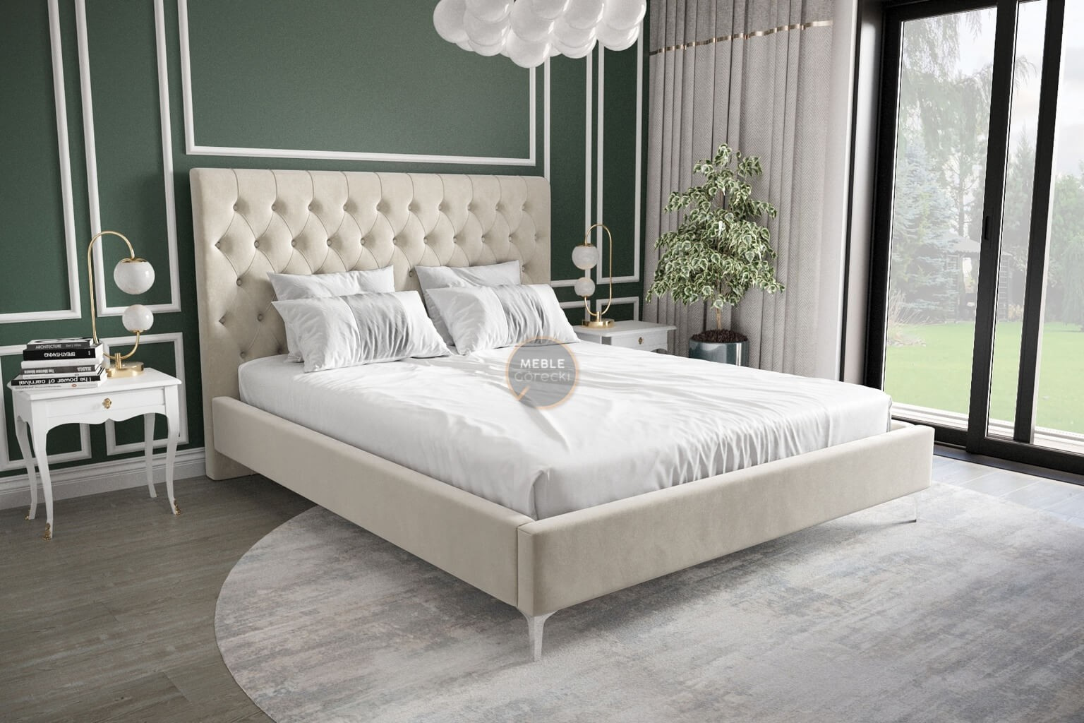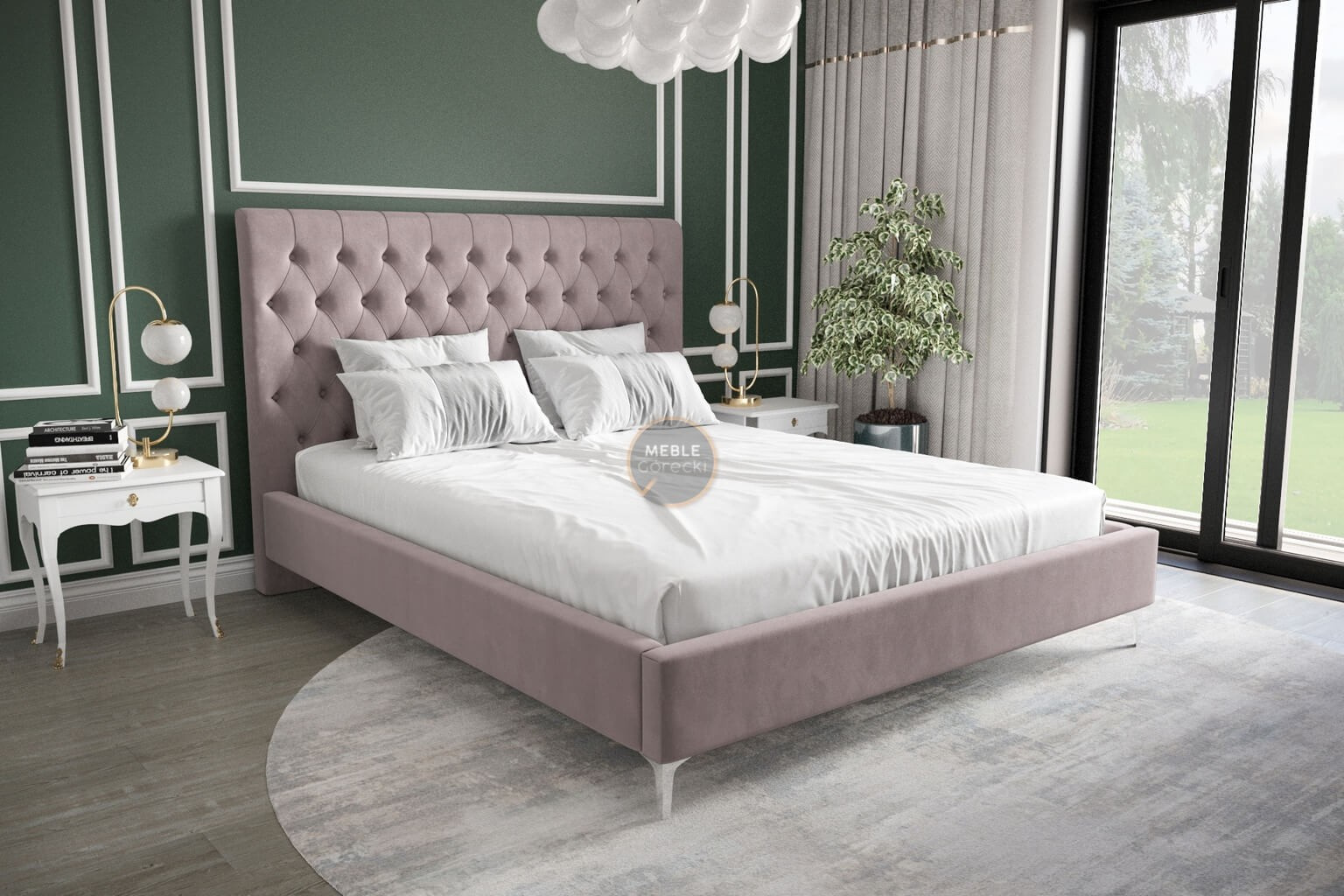 Čalúnená posteľ Valentino je ideálnym modelom pre fanúšikov štýlu glamour. Celkový dojem dopĺňa ozdobné prešívané čelo postele. Stojí za to venovať pozornosť detailom v podobe vysokých kovových nožičiek, ktoré dodávajú štýl a ľahkosť.