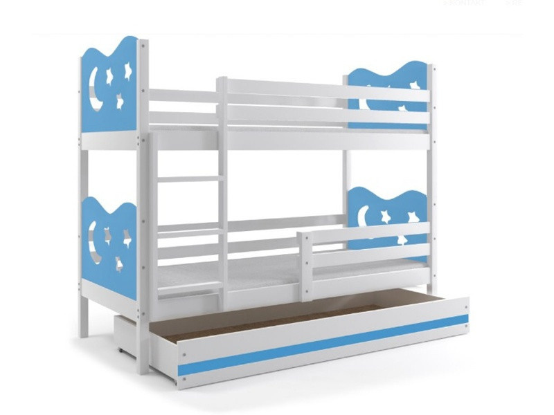 Posteľ z masívneho dreva pre 2 deti MAX 2 - biela/modrá