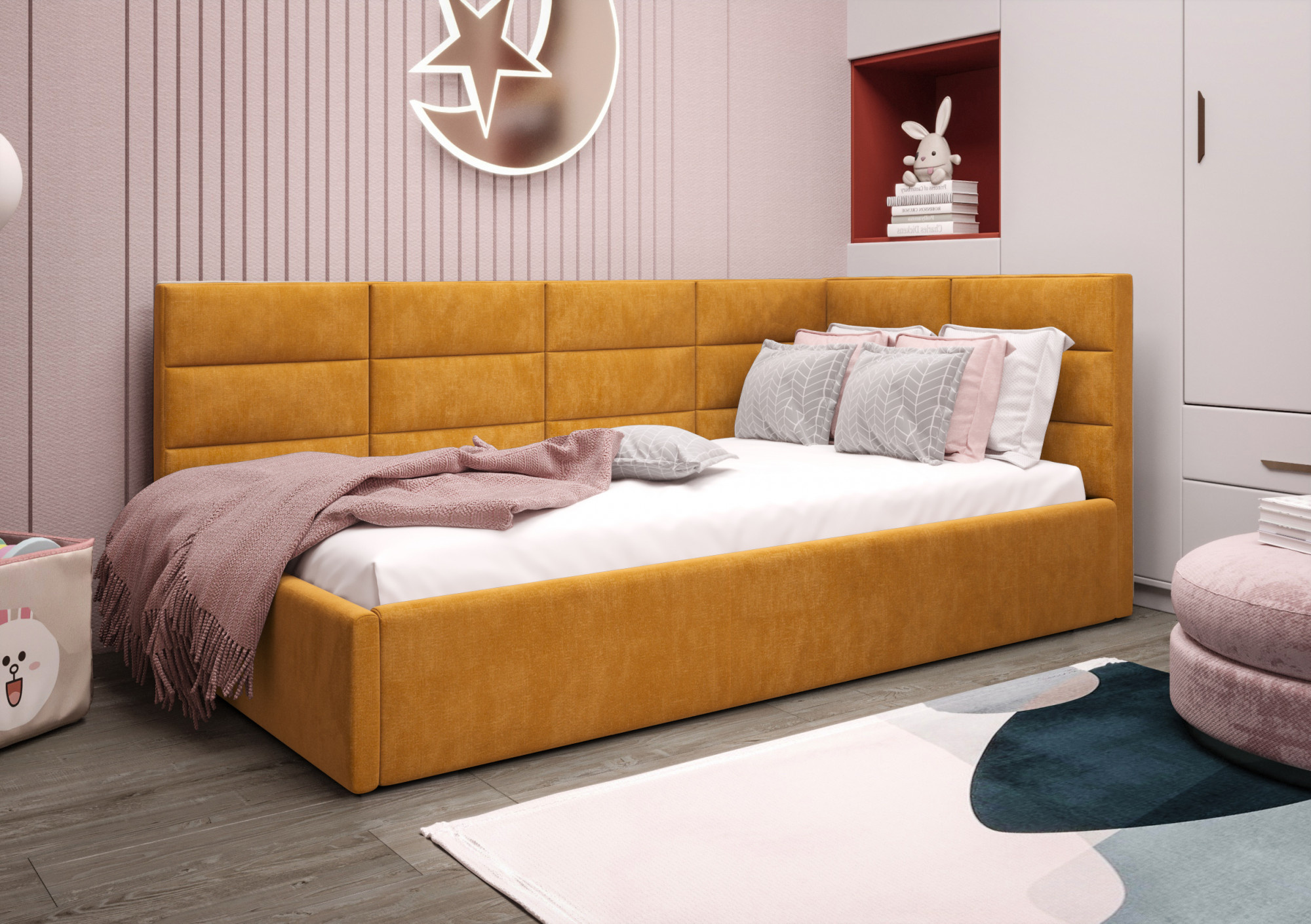Čalúnená posteľ ZAZU je naším návrhom modelu pre jednu osobu. Vytvorený s ohľadom na najmladších – skvele sa uplatní aj v izbe pre mládež, hotelovej alebo penziónovej izbe. Široký výber tkanín a farieb umožní prispôsobiť nábytok interiéru, ktorý zariaďujete. Už dnes sa postarajte o spánok svojho dieťaťa so značkou Meble Górecki.