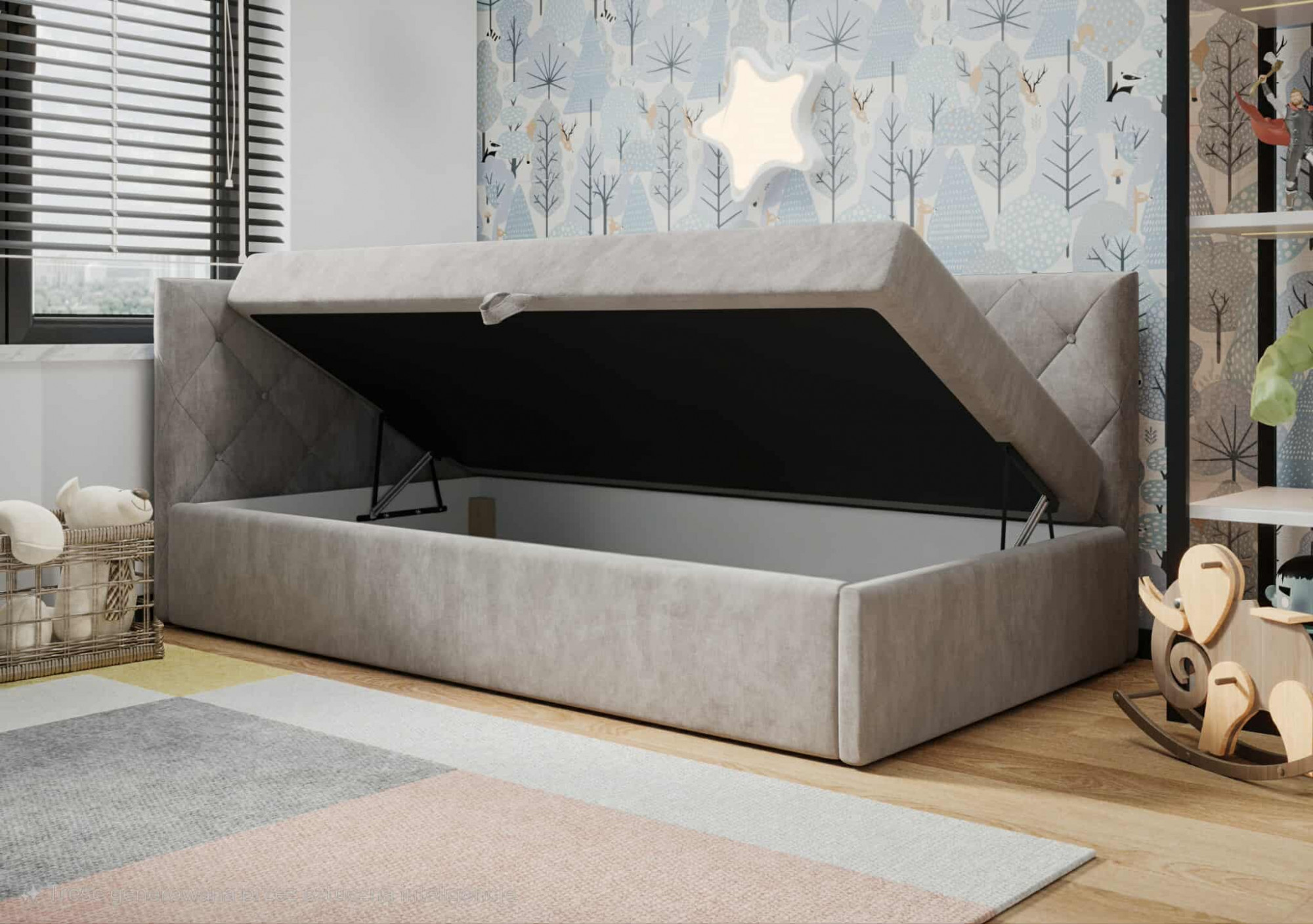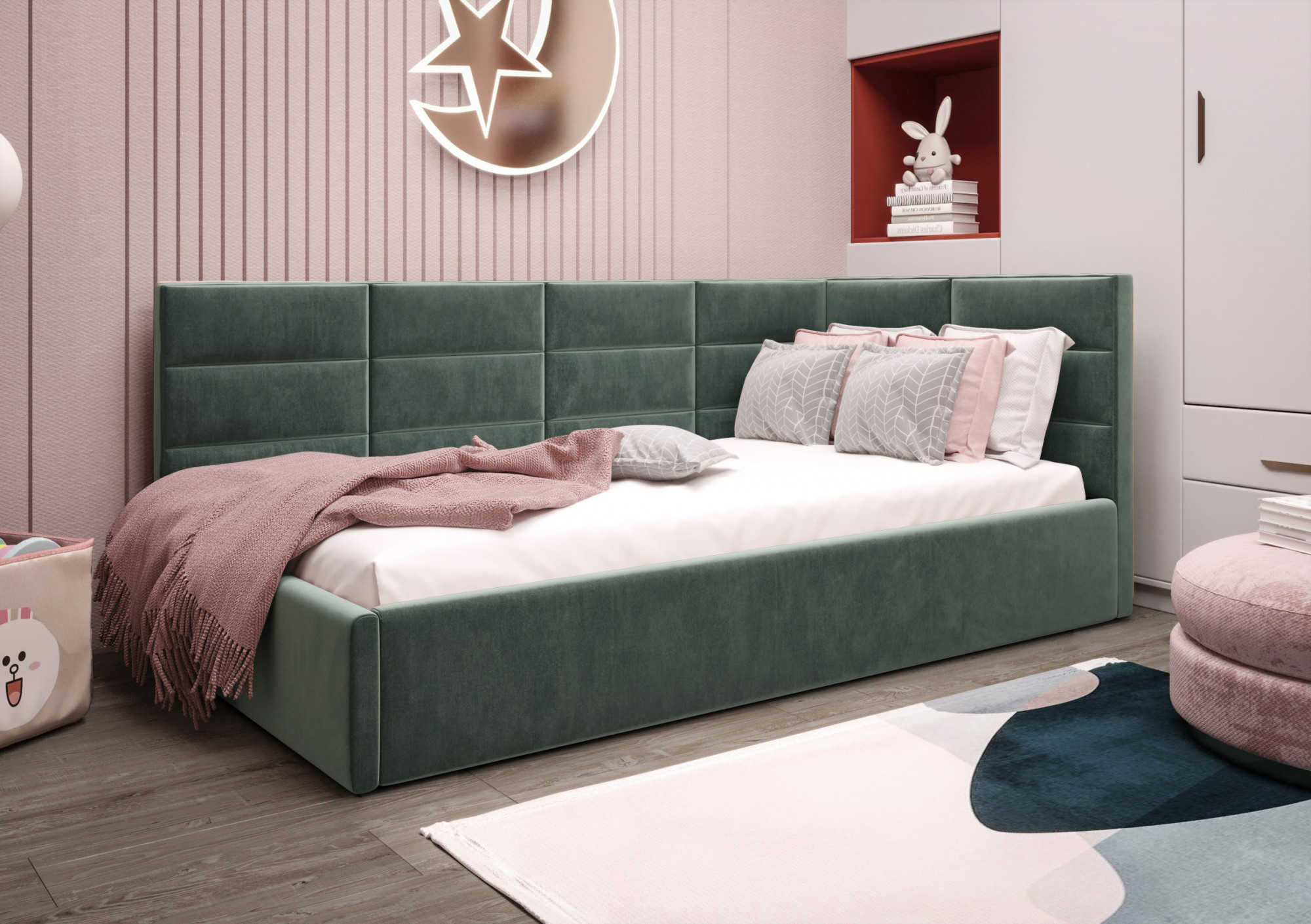 Čalúnená posteľ ZAZU je naším návrhom modelu pre jednu osobu. Vytvorený s ohľadom na najmladších – skvele sa uplatní aj v izbe pre mládež, hotelovej alebo penziónovej izbe. Široký výber tkanín a farieb umožní prispôsobiť nábytok interiéru, ktorý zariaďujete. Už dnes sa postarajte o spánok svojho dieťaťa so značkou Meble Górecki.