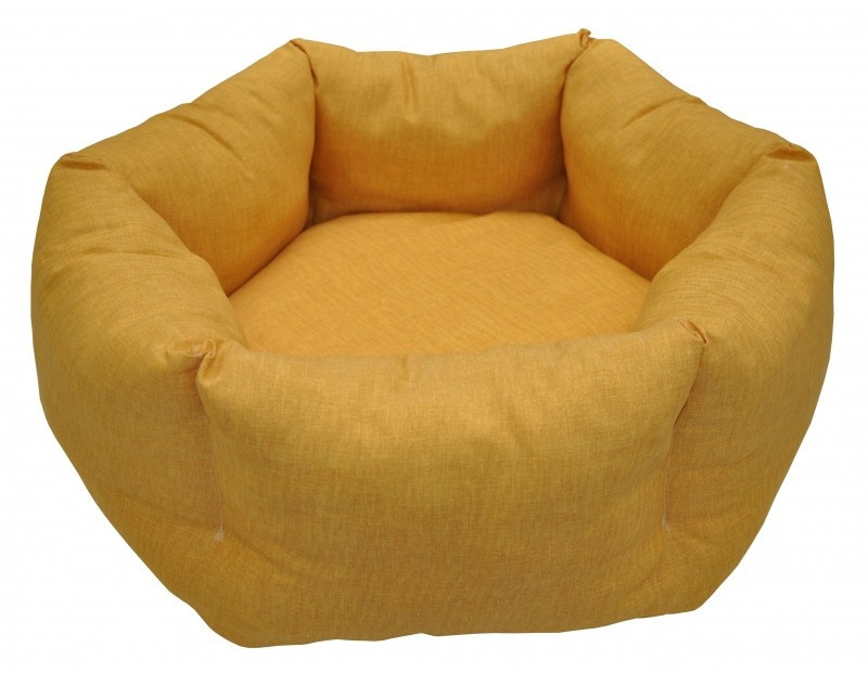 Pelech pre mačky alebo menšie plemená psov v tvare šesťuholníka. | Posteľ je vyplnená polyesterovým vláknom. Váš domáci miláčik tak bude mať svoj vlastný pelech z toho najlepšieho materiálu. Vnútorný odnímateľný vankúš je tiež vyplnený polyesterovým vláknom. Vnútornú podložku možno používať aj samostatne. Priemer lôžka je 70 cm. Výška postele je 27 cm. Priemer vnútornej podložky je 60 cm.