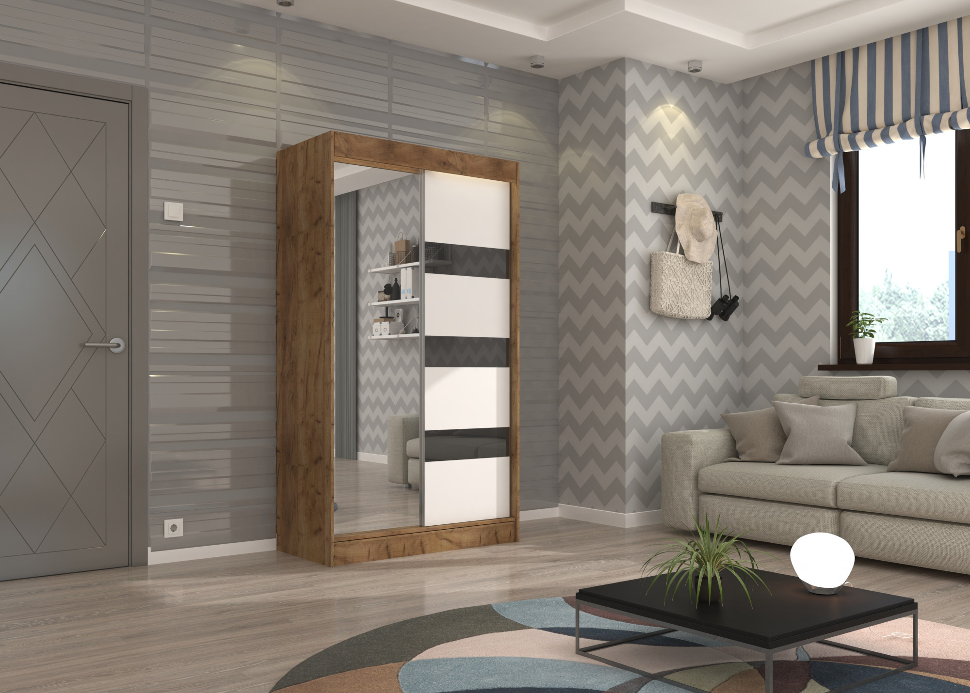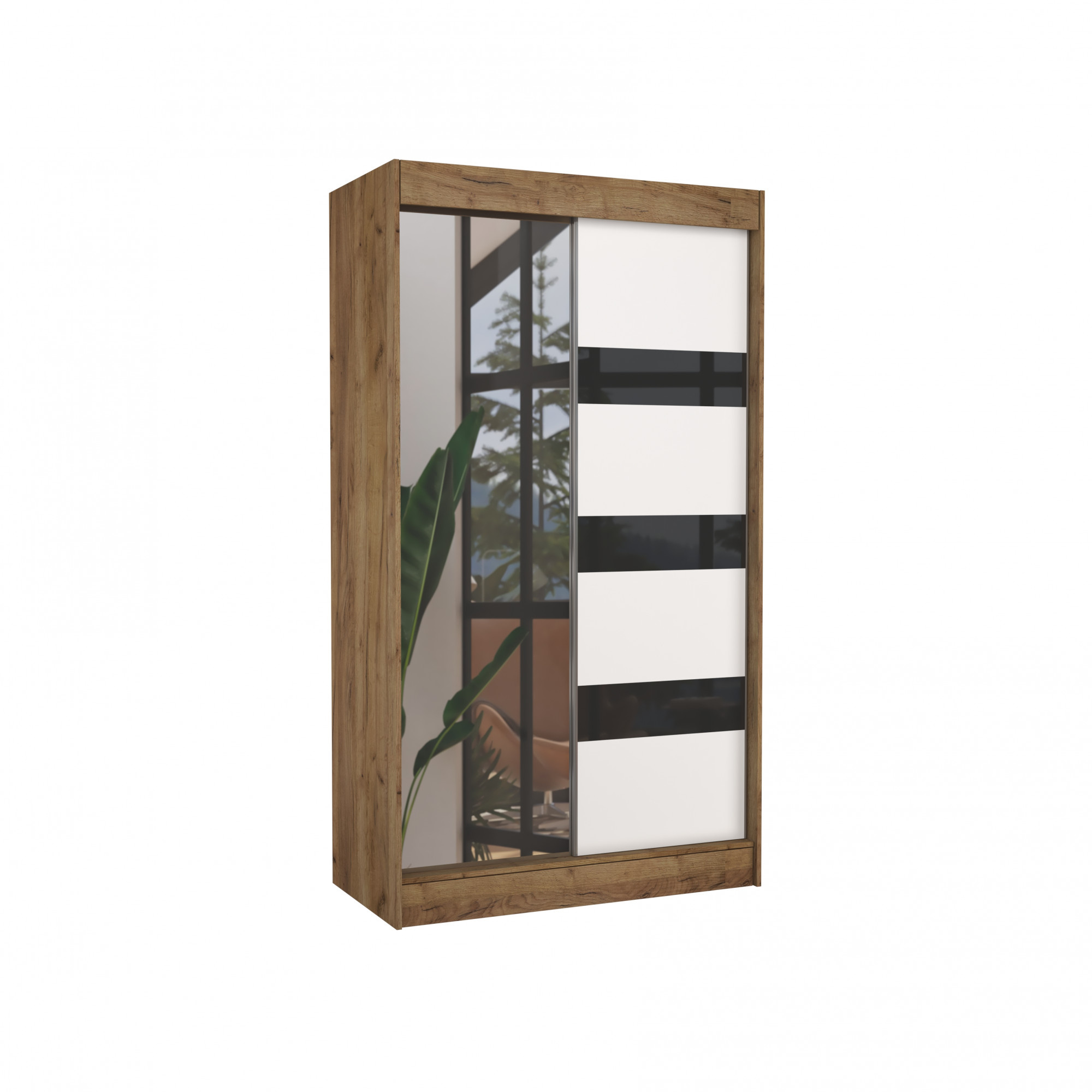 Šatní skriňa s posuvnými dverami, zrkadlom a lacobelom TOURA 120 Craft+White