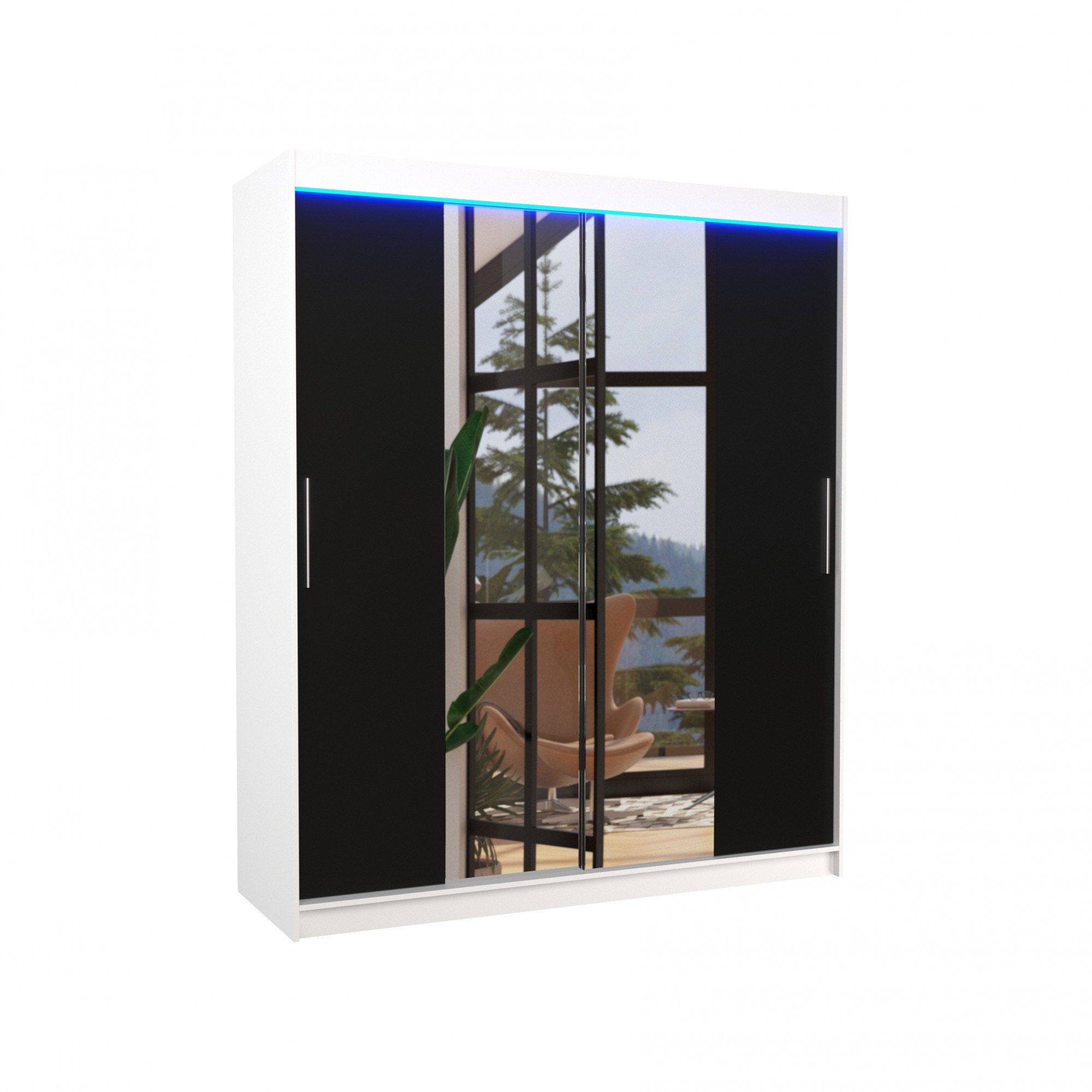 Posuvná skriňa so zrkadlom a LED osvetlením DALLAS 180 Biela+Čierna