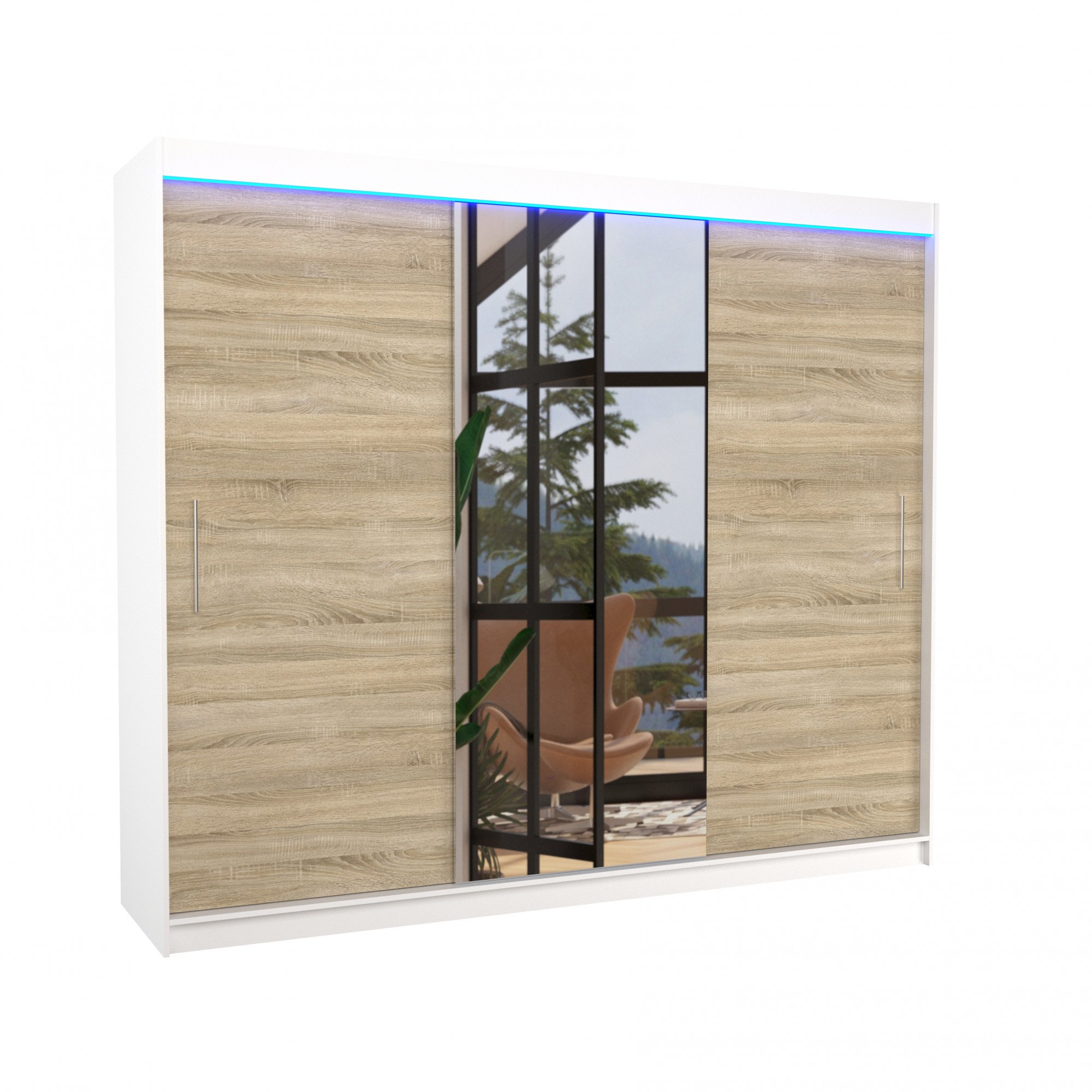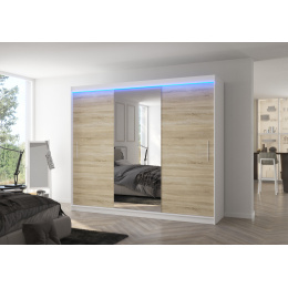 Posuvná skriňa so zrkadlom a LED osvetlením DENIS 250 Biela+Sonoma