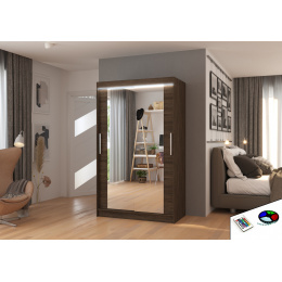 Posuvná skriňa so zrkadlom a LED osvetlením TIBAGO 120 Choco+Choco