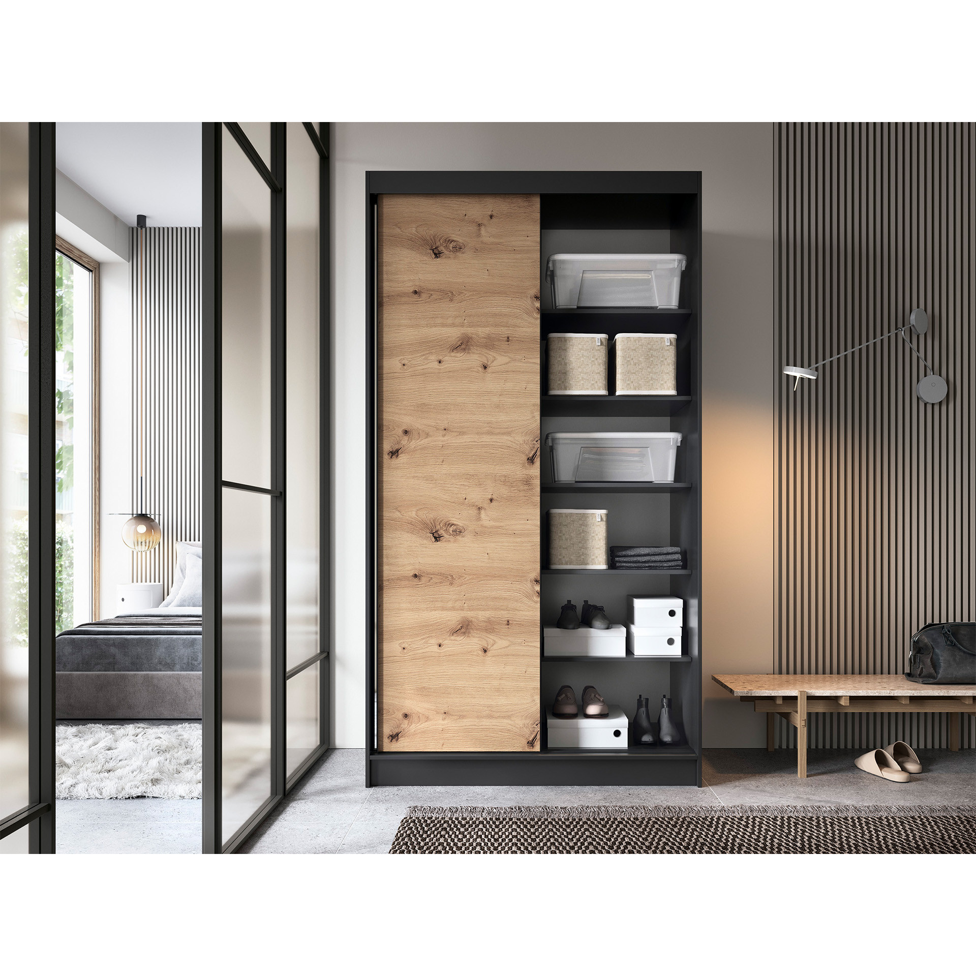 Posuvná skriňa ESVILLE II, Dub Artisan/Čierny Mat