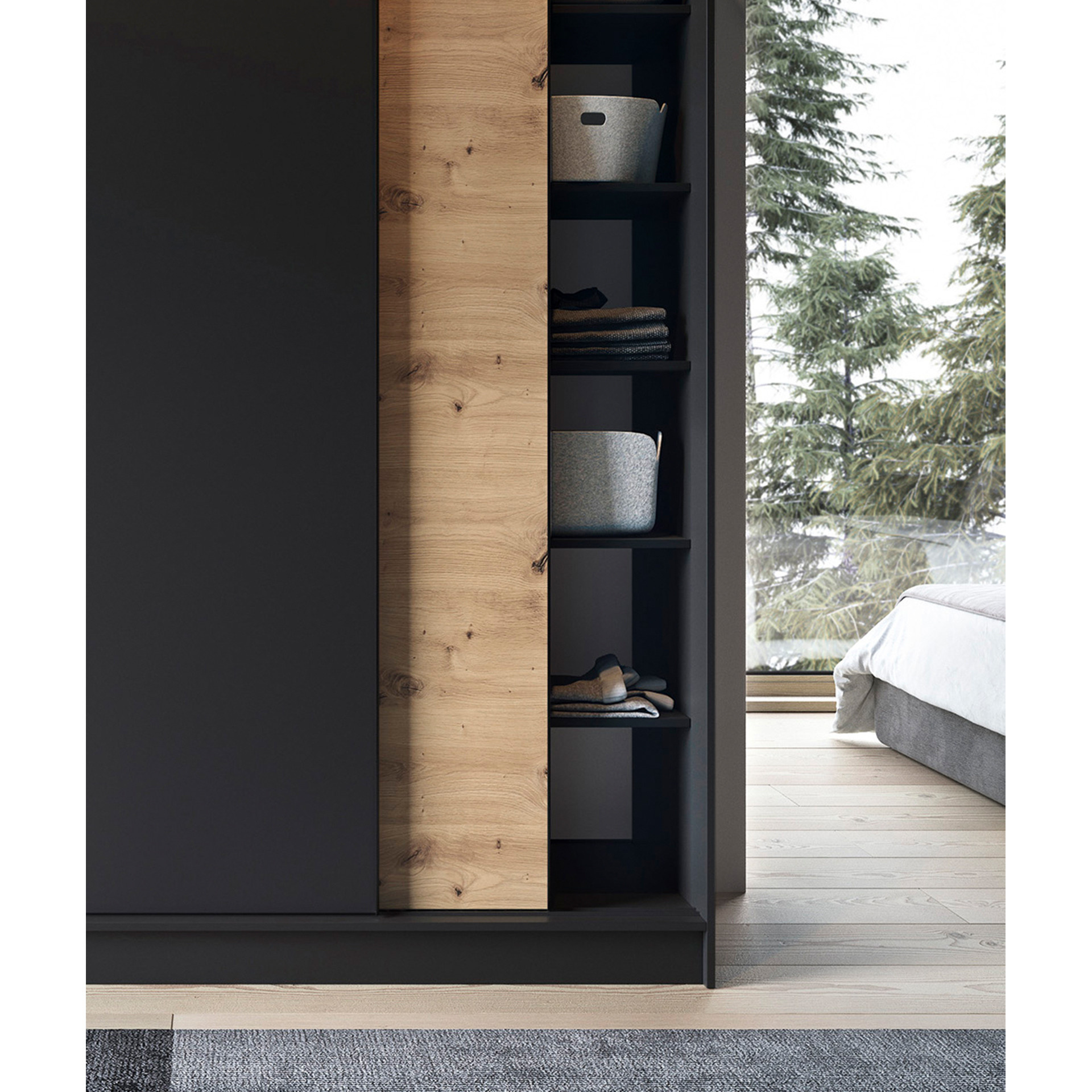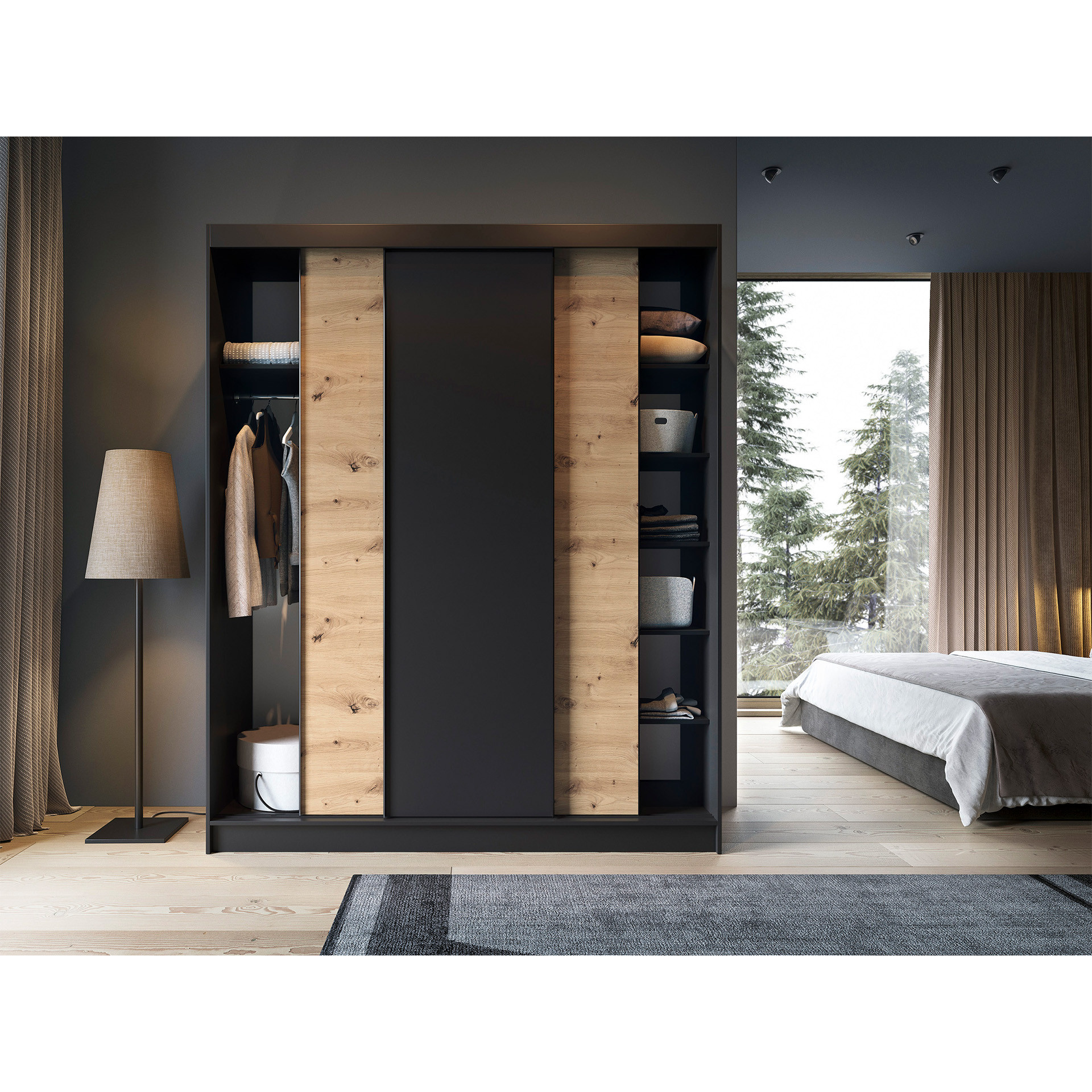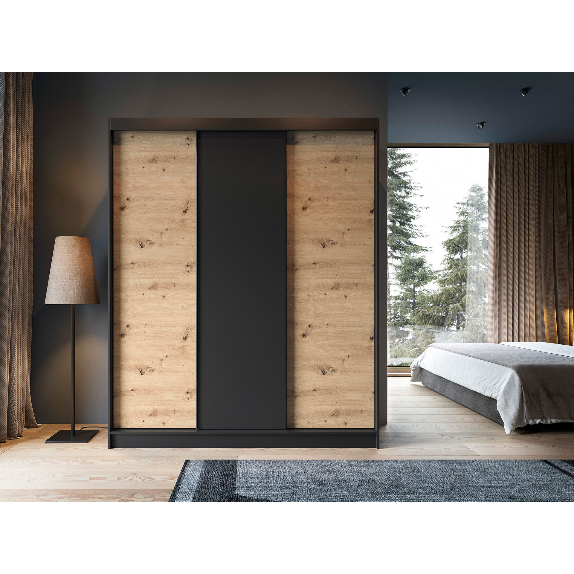 Posuvná skriňa ESVILLE III, Dub Artisan/Čierna Matná