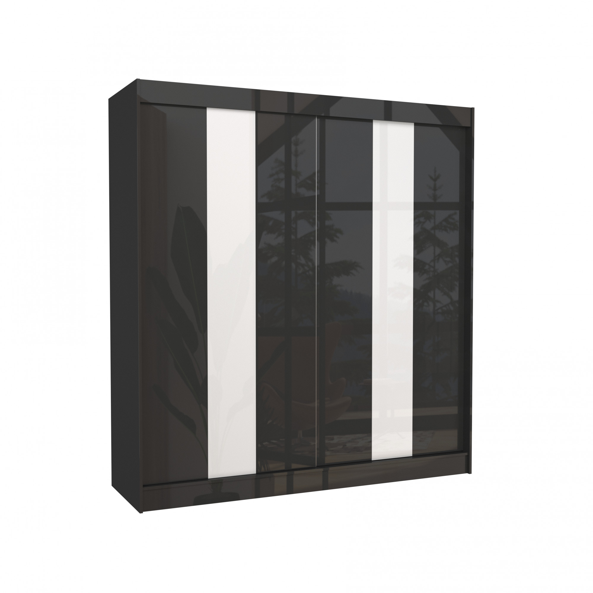 Posuvná skriňa s lacobelom KAREN 200 Čierna+Biela Lacobel