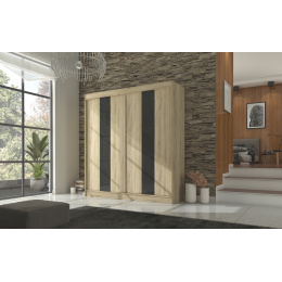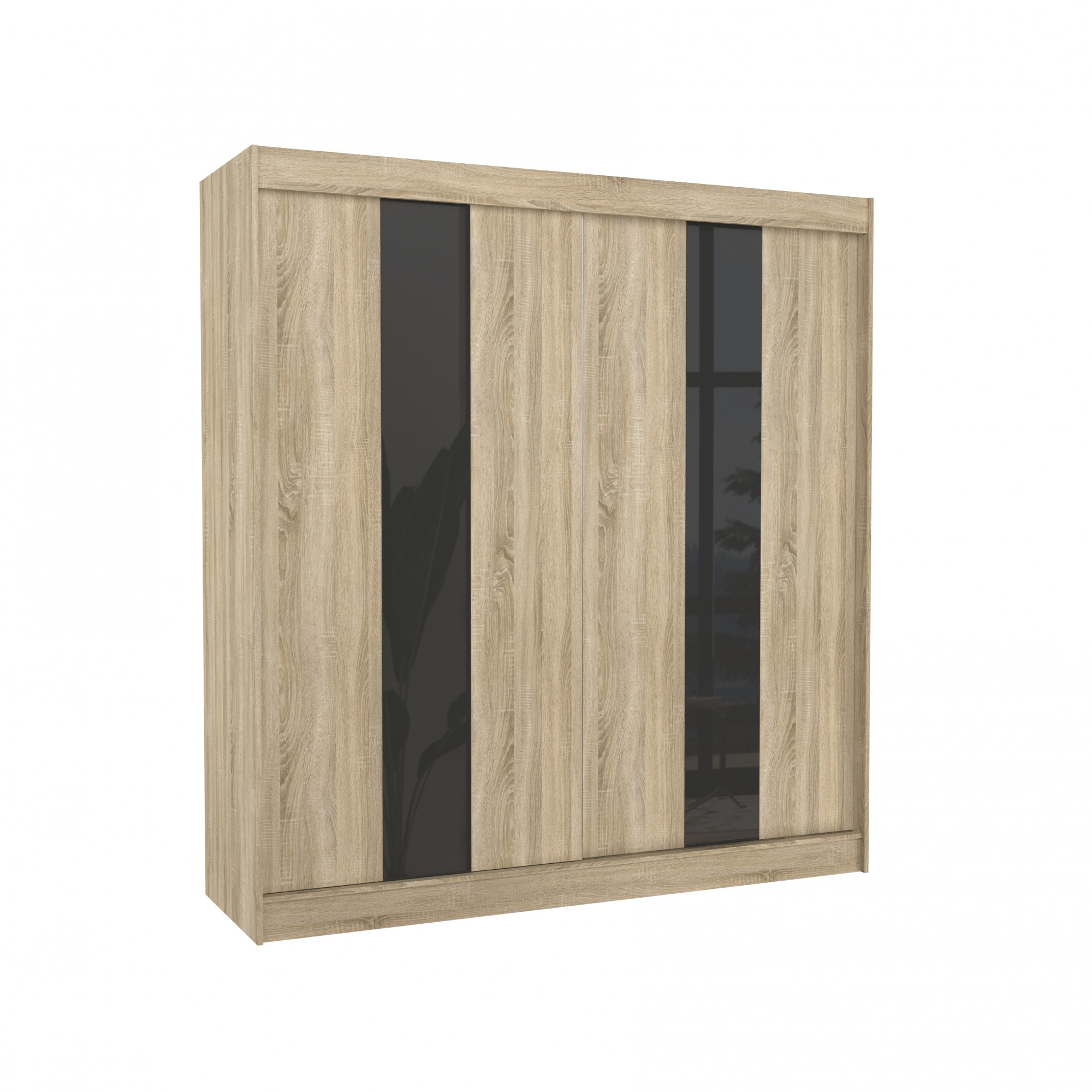 Posuvná skriňa s lacobelom KAREN 200 Sonoma+Čierny Lacobel
