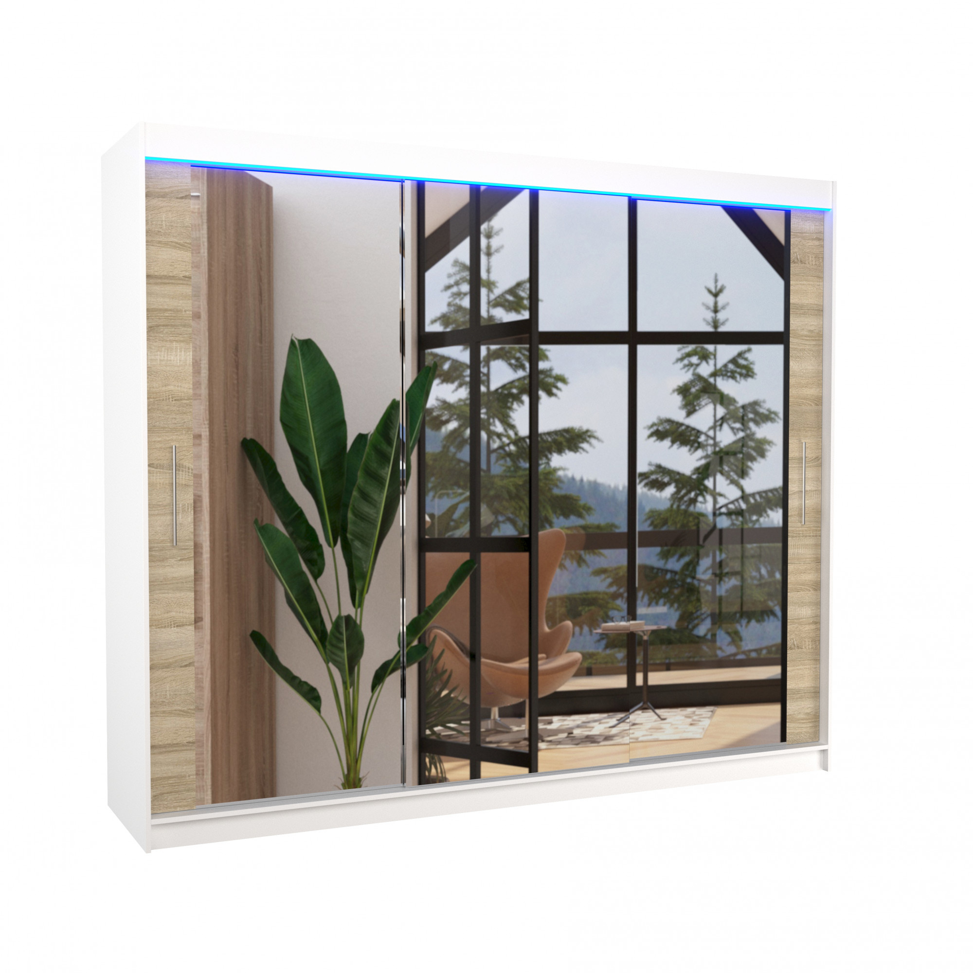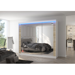 Posuvná skriňa so zrkadlom a LED osvetlením CHESTER 250 Biela+Sonoma