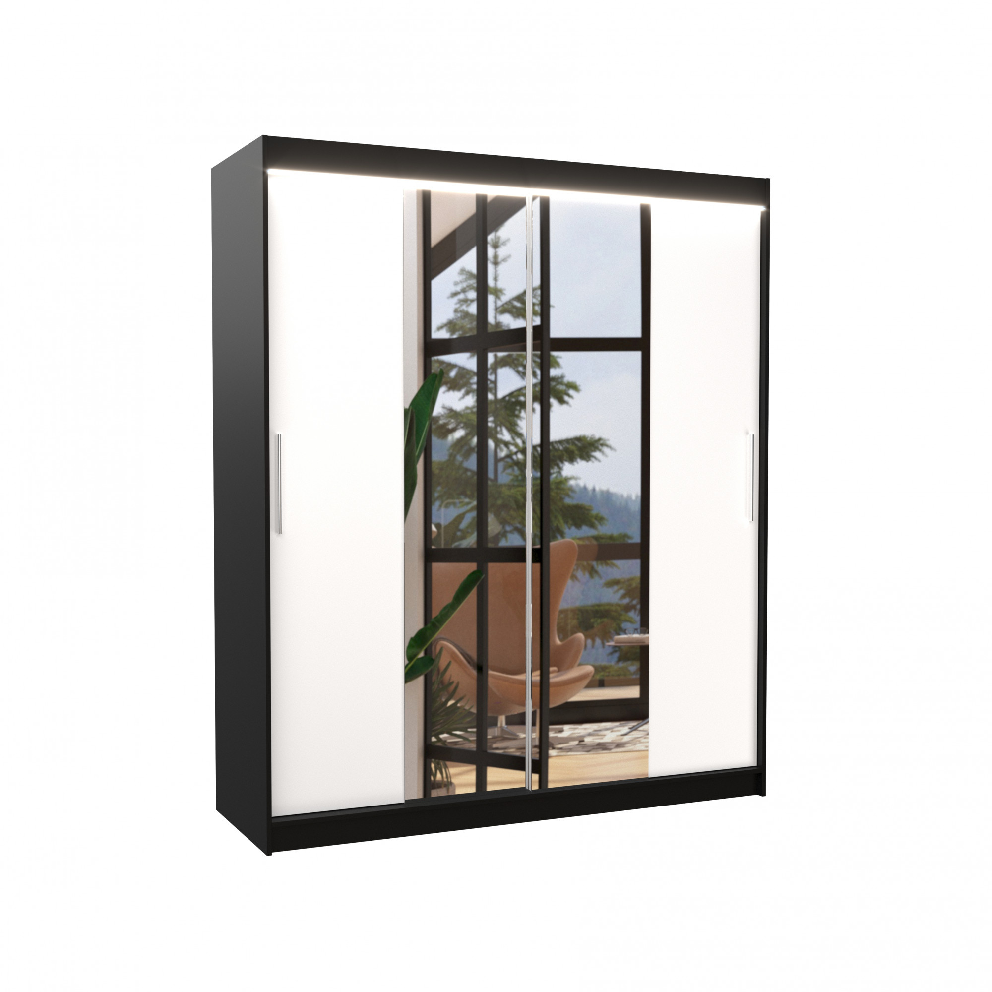 Posuvná skriňa so zrkadlom a LED osvetlením DALLAS 180 Čierna+Biela