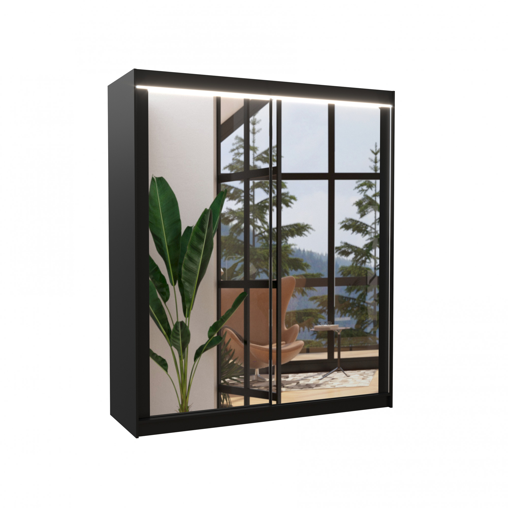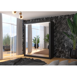 Posuvná skriňa so zrkadlom a LED osvetlením MORGAN 180 Čierna+Čierna