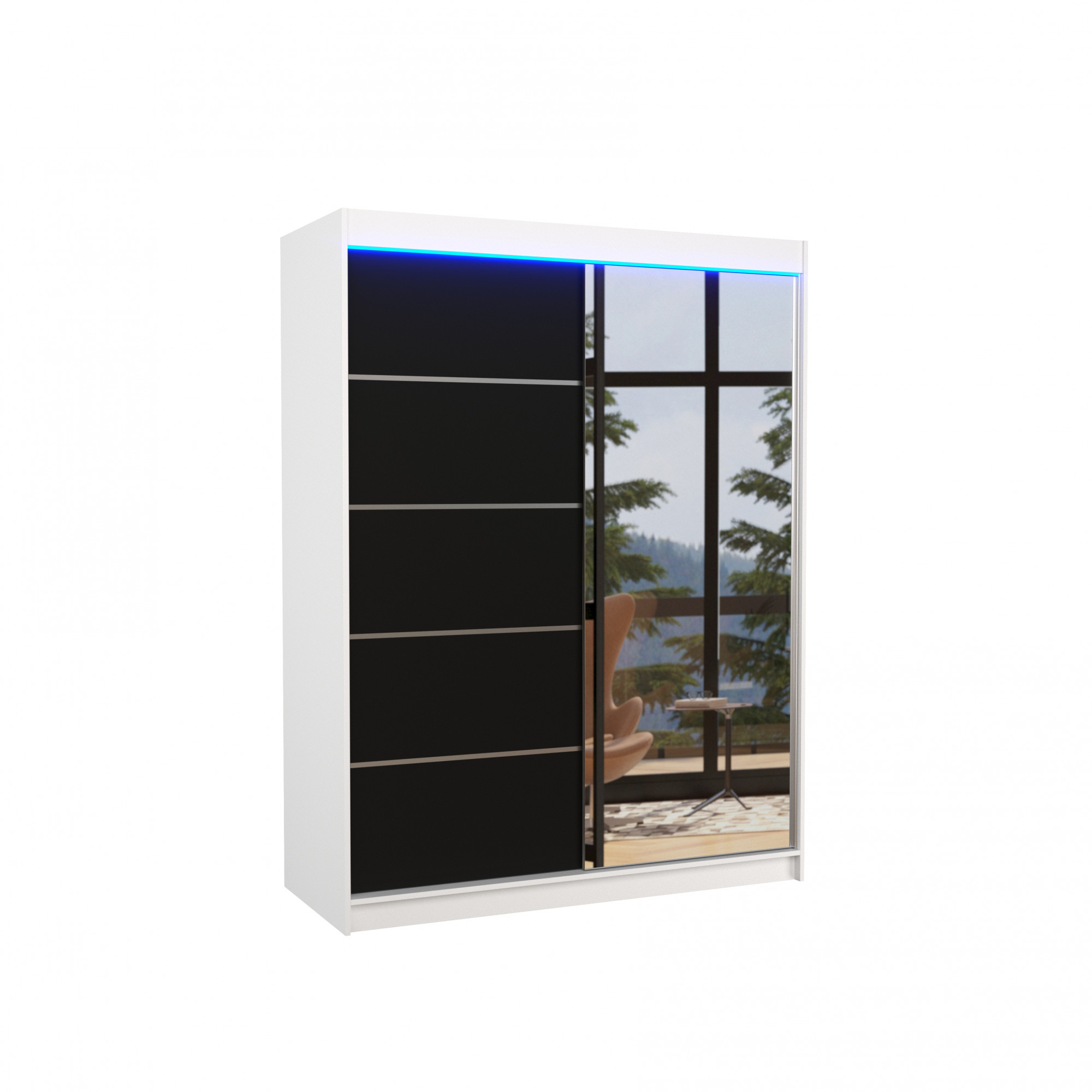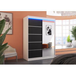 Posuvná skriňa so zrkadlom a LED osvetlením LIMBO 150 Biela+Čierna