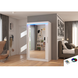 Posuvná skriňa so zrkadlom a LED osvetlením TIBAGO 120 Biela+Biela