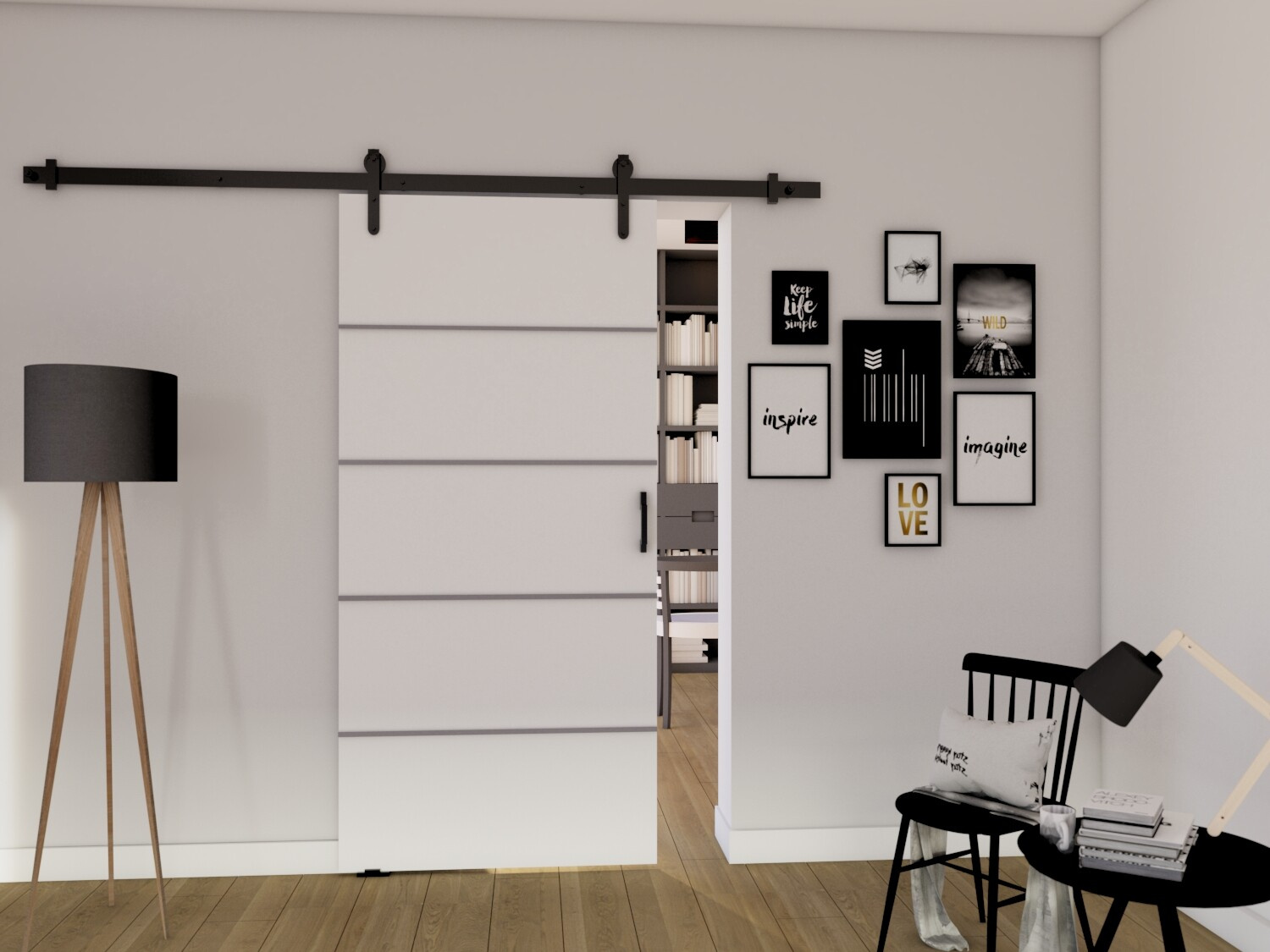 Posuvné dvere LOFT B70, biela/čierna