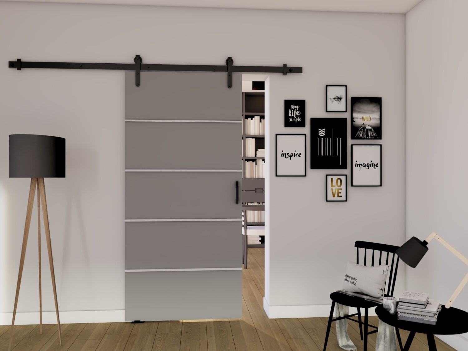 Posuvné dvere LOFT B70, sivá/čierna