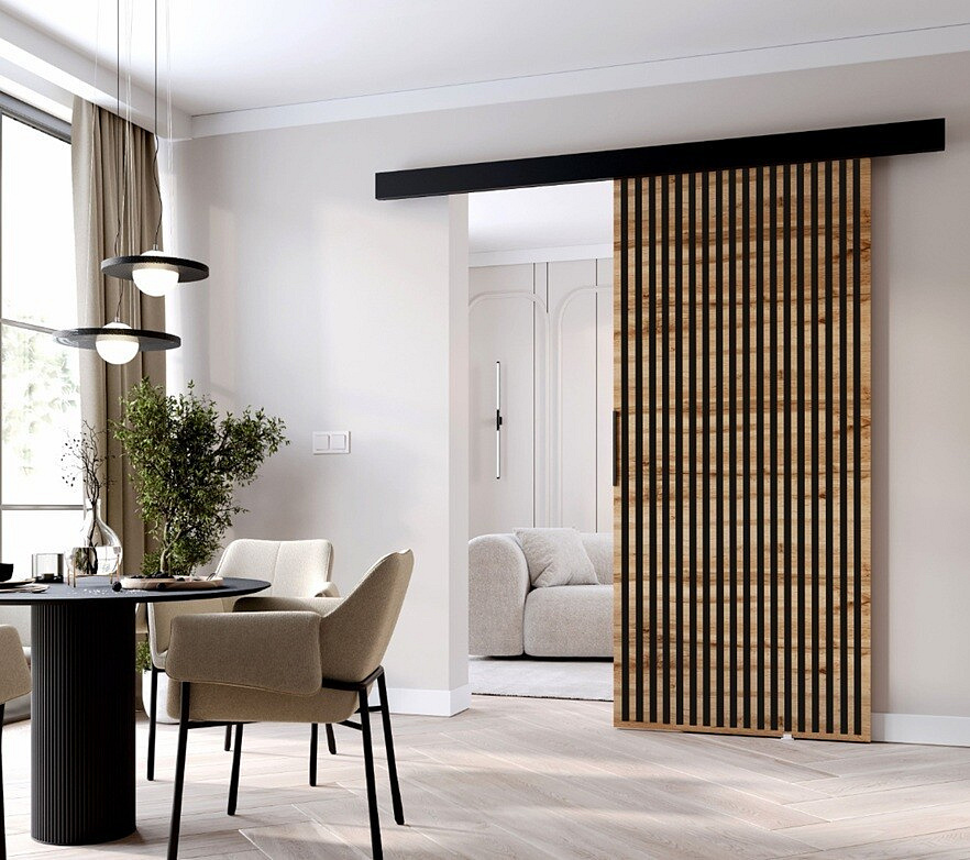 Model L90 MIX je inovatívne a funkčné riešenie, ktoré dokonale doplní akýkoľvek interiér, najmä tam, kde je priestor obmedzený. Vďaka modernému posuvnému systému tieto dvere ponúkajú jednoduché použitie a optimalizujú priestor, čím eliminujú potrebu ďalšieho priestoru na otváranie tradičných dverí. Sú vynikajúcou voľbou pre menšie byty, kde záleží na každom centimetri, ale dobre sa hodia aj do väčších miestností, kde im dodávajú moderný charakter.