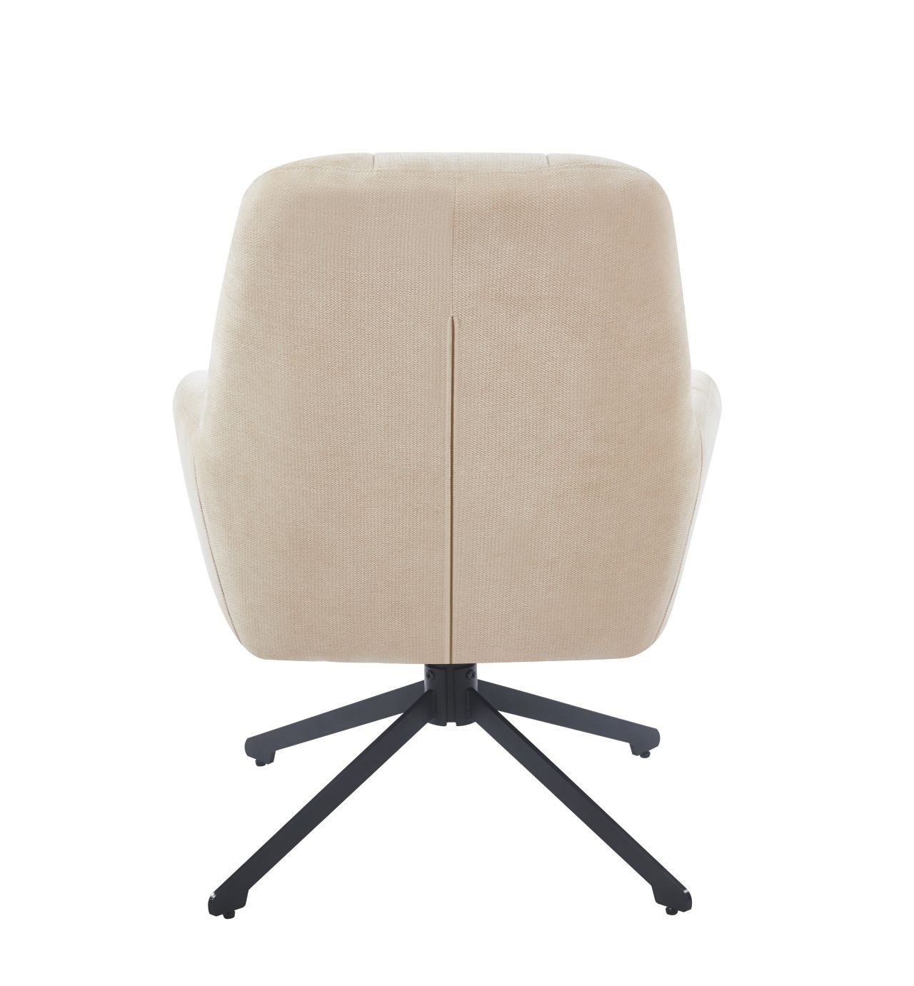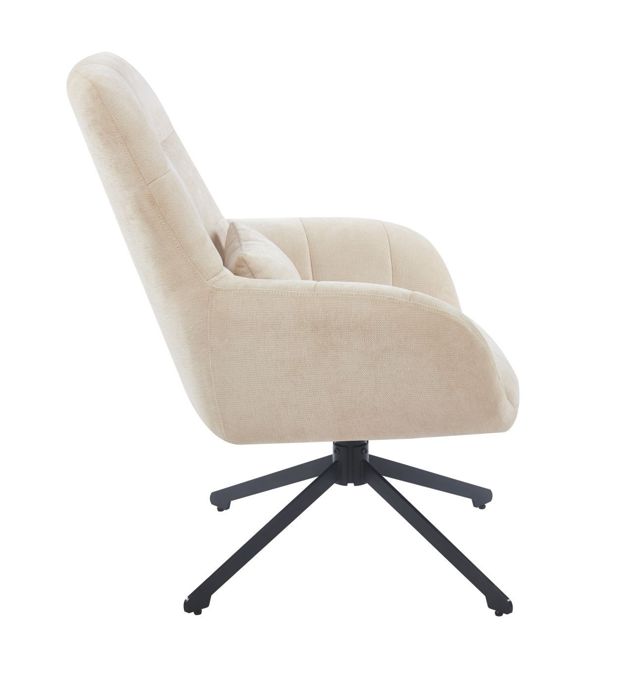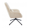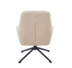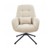 Kreslo má sedák otočný v rozsahu 360 stupňov Rozmery: - šírka sedáka: 48 cm - celková šírka: 71 cm - výška sedáka: 50 cm - celková výška: 95 cm - hĺbka sedáka: 51 cm - vankúš: 31x21 cm Materiál - čalúnenie: látka Holms - rám: kov lakovaný práškovou farbou Farba: - čalúnenie: béžová - rám: čierna Ostatné: - otočný sedák - vankúš