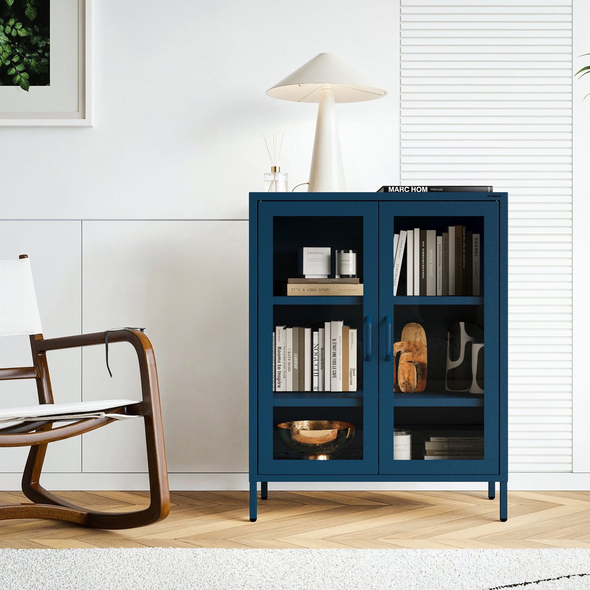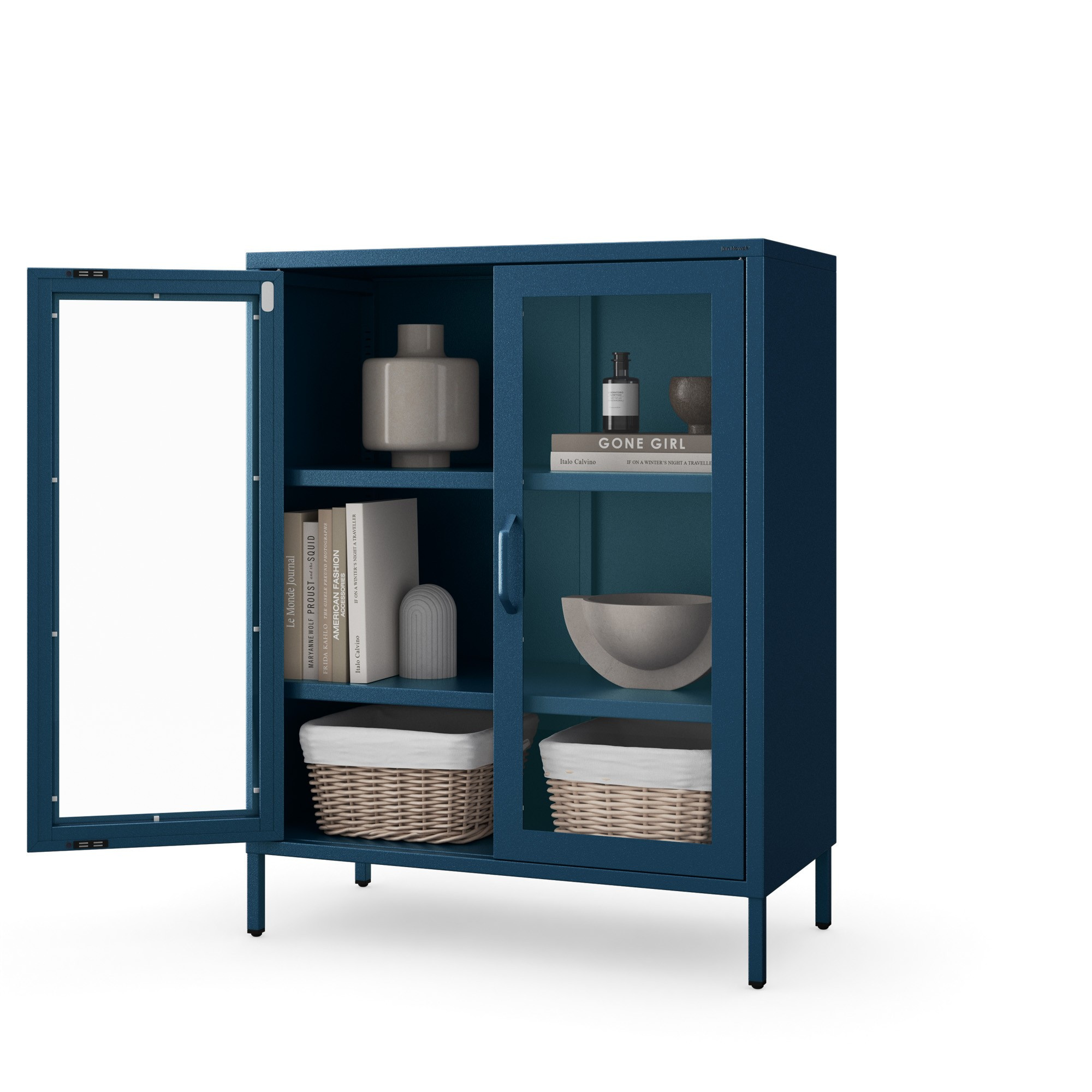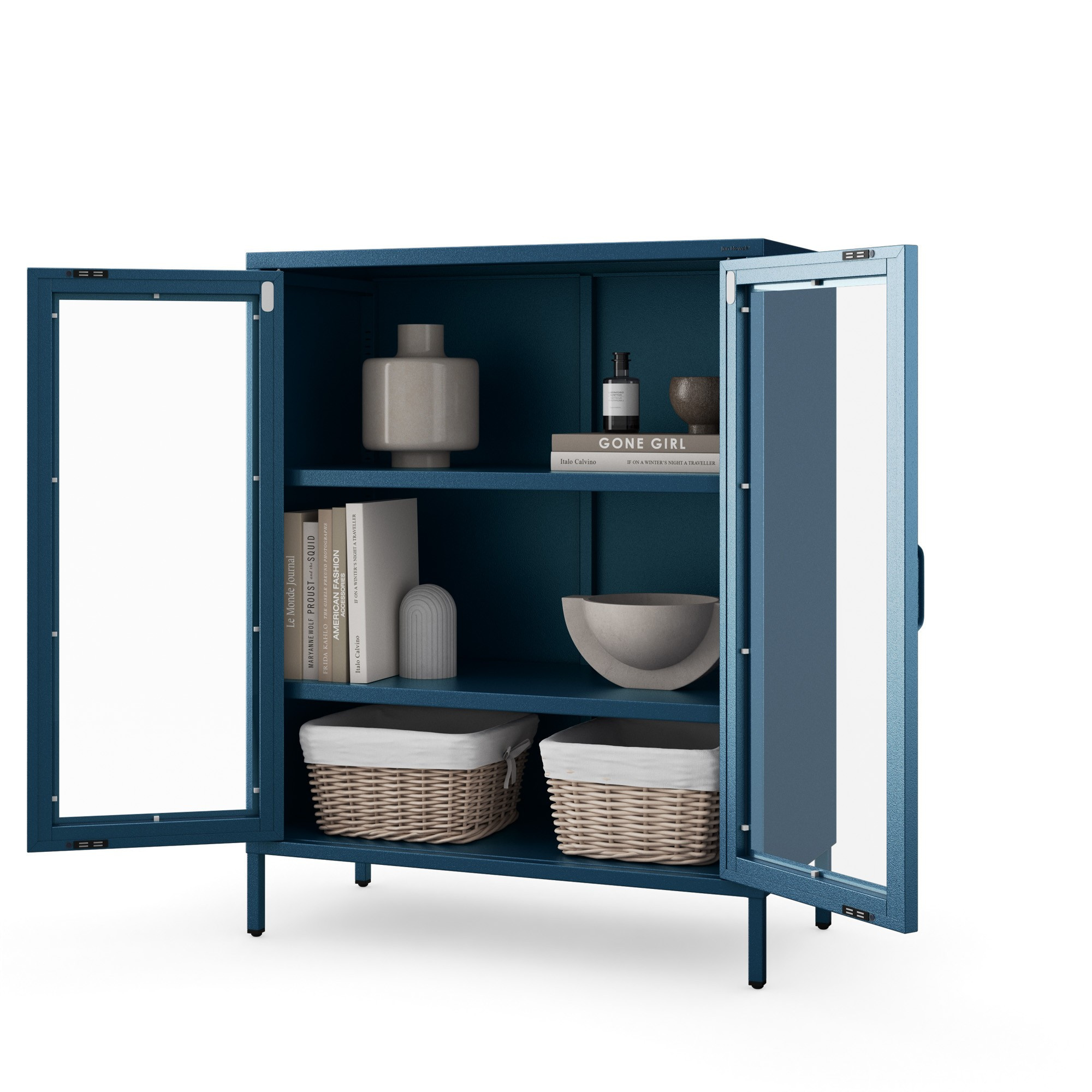 Vnútorný priestor vitríny je rozdelený dvoma nastaviteľnými policami, ktorých výšku si môžete prispôsobiť podľa svojich potrieb. Poličky sú dostatočne pevné, aby uniesli aj ťažšie predmety, ako sú napríklad knihy alebo keramika.