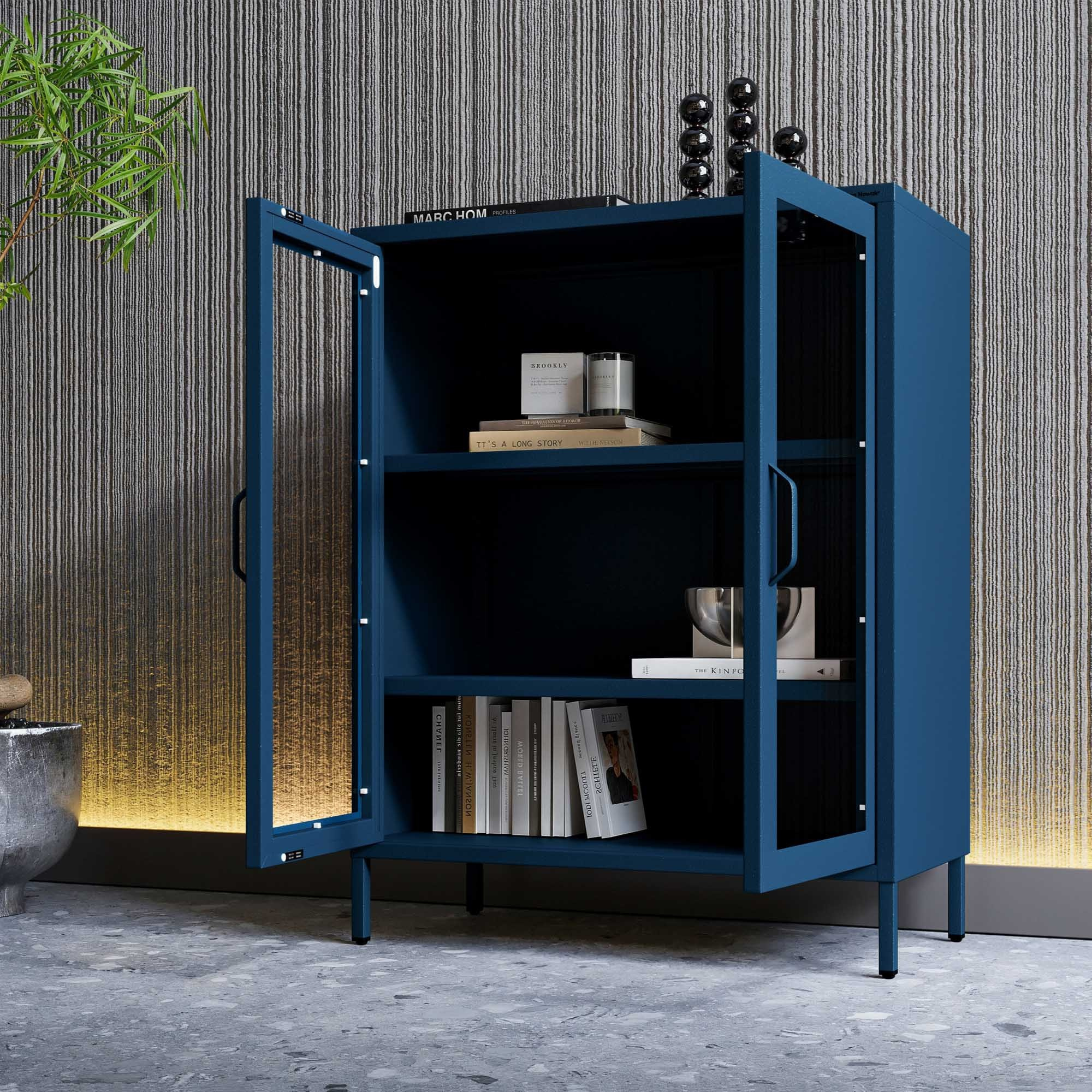 Presklená nízka vitrína tmavomodrá: Moderná GINA, 800 x 1015 x 400 mm