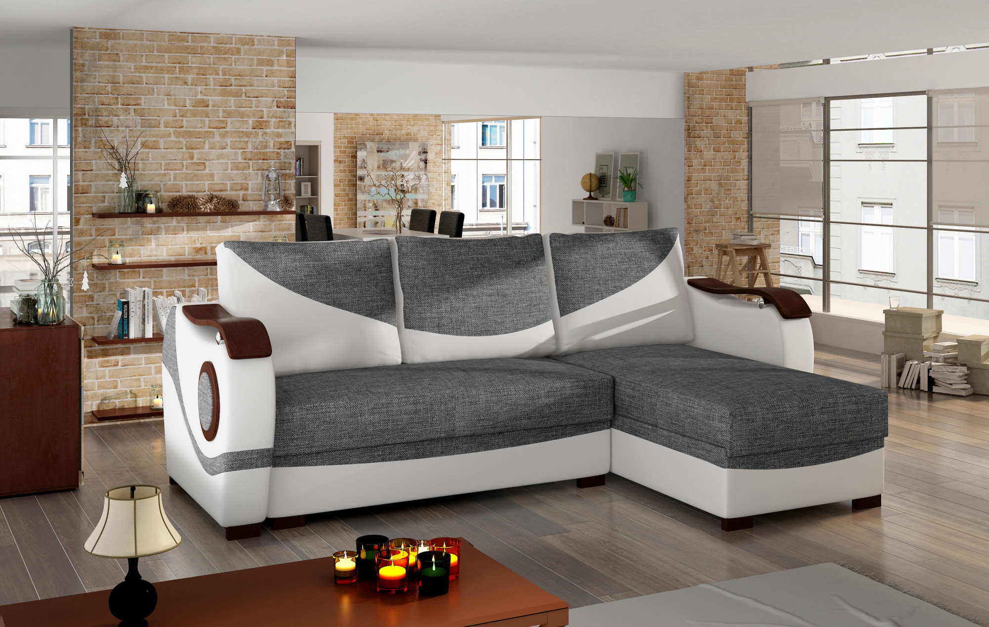 Puerto je sofistikovaná, originálna a moderná rohová pohovka pre vyznávačov originálnych riešení. Nábytok s rozmermi 235 x 140 x 90 cm zaručuje priestrannosť a pohodlie počas dňa, ako aj maximálne pohodlie a pokojný spánok na ploche 195 x 125 cm v noci. Jednoduchý rozkladací mechanizmus v podobe výsuvného dna a rozkladacieho operadla umožňuje rohovú pohovku rýchlo prispôsobiť vašim potrebám. Rohová pohovka má dva priestranné úložné priestory na lôžkoviny - jeden z nich sa nachádza v otomane, druhý je k dispozícii po nastavení nábytku na nočnú funkciu. Zážitok výnimočnej mäkkosti umožňuje kombinácia peny Bonel a T25. Práve táto kombinácia ovplyvňuje pocit maximálneho uvoľnenia, ktorý náš nábytok ponúka. Medzi charakteristické črty tohto modelu môžeme určite zaradiť ďalšie ozdoby v podobe drevených prvkov na podrúčkach, bokoch a nohách - všetky sa odrážajú v originálnom tóne celku. Ak chcete pocítiť energiu, ktorá prúdi z portorického kúta - odporúčame vám pozrieť sa bližšie.