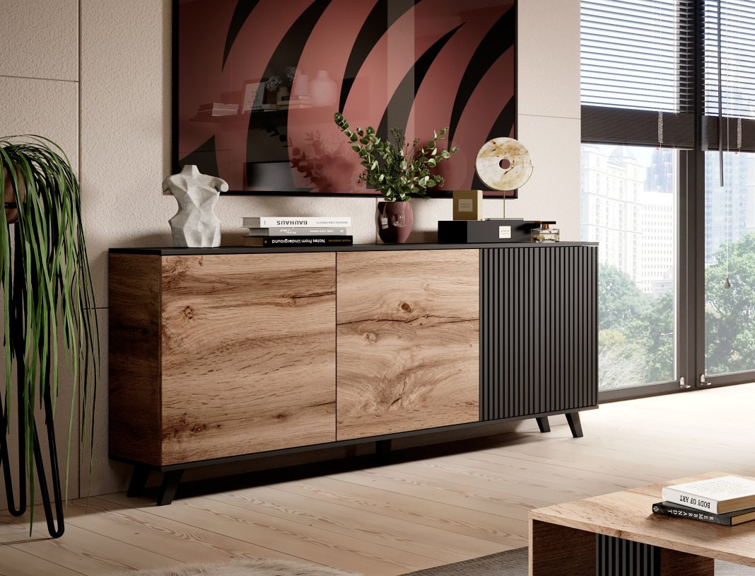 Komoda RANDOM KM-1, dub wotan/čierna