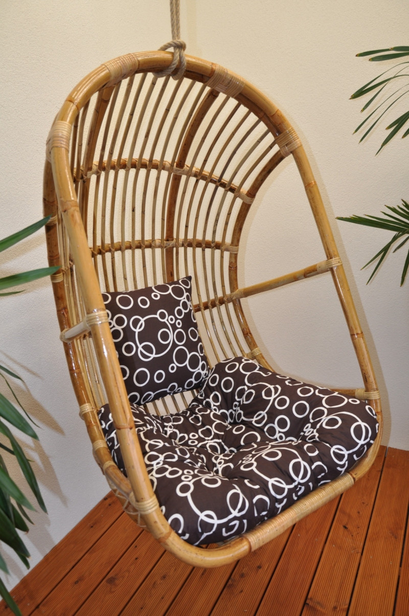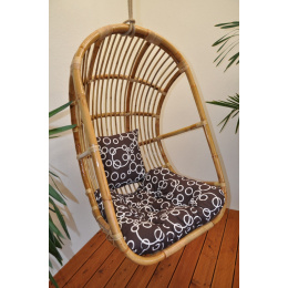 Ratanová závesná hojdačka z masívneho prírodného ratanu semambo. | Hojdačka je vyrobená z prírodného ratanu Semambo, ktorý sa vyznačuje vysokou pevnosťou a odolnosťou. V hornej časti hojdačky sa používajú dvojité ratanové tyče na zvýšenie pevnosti. Rozmery hojdačky sú 80x118x85 cm. Nosnosť hojdačky je 100 kg. Závesná hojdačka sa dodáva s kvalitnými vankúšmi, ktoré sú vyrobené v Českej republike. Podložky je možné prať pri 40 °C. Súčasťou balenia je aj pevné lano na zavesenie.