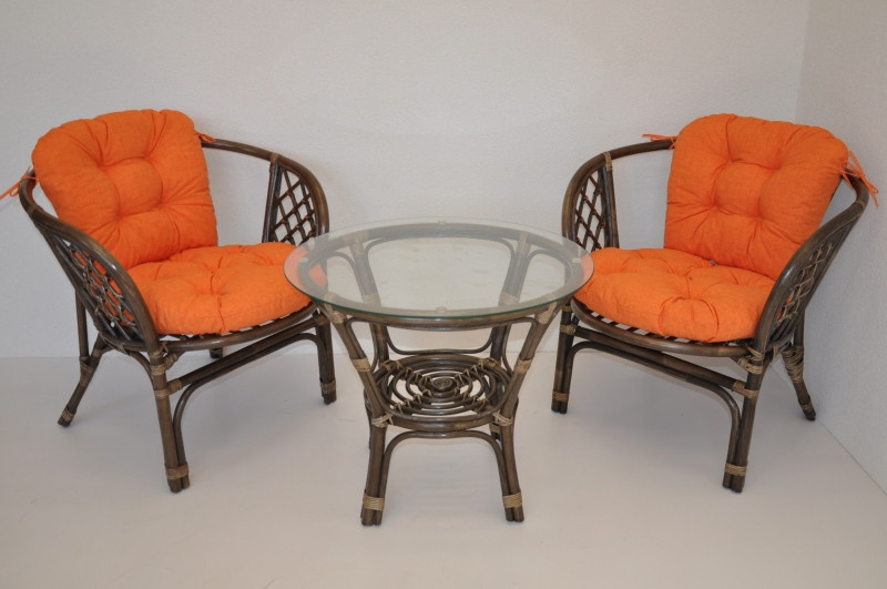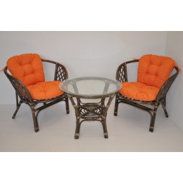 Ratanová sedacia súprava Bahama pozostáva z dvoch kresiel, stolíka so sklenenou doskou a kompletnej sady vankúšov. | Farba ratanovej konštrukcie je hnedá. Konštrukčným materiálom je prírodný ratan. Rozmery stoličky bahama sú 68x66x73 cm, výška sedadla je 44 cm, nosnosť stoličky je 110 kg. Výška stola je 55 cm, priemer stola je 60 cm. Spoje ratanovej konštrukcie sú skrutkované. Vankúše tejto sedacej súpravy Bahama sú vyrobené v Českej republike. Vankúše sú vyrobené z kvalitnej tkaniny a vyznačujú sa vysokou kvalitou spracovania.Polstre pre nás vyrába spoločnosť AXIN Cuschions s.r.o., ktorá zamestnáva výlučne miestne vyučené krajčírky z Českej republiky. Týmto spôsobom sa budeme snažiť podporiť výrobu a zamestnanosť v našej krajine. Výplň vankúšov je z drvenej peny a vankúše sa môžu prať ručne pri 40 °C.