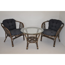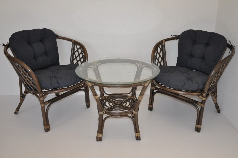 Ratanová sedacia súprava Bahama pozostáva z dvoch kresiel, stolíka so sklenenou doskou a kompletnej sady vankúšov. | Farba ratanovej konštrukcie je hnedá. Konštrukčným materiálom je prírodný ratan. Rozmery stoličky bahama sú 68x66x73 cm, výška sedadla je 44 cm, nosnosť stoličky je 110 kg. Výška stola je 55 cm, priemer stola je 60 cm. Spoje ratanovej konštrukcie sú skrutkované. Vankúše tejto sedacej súpravy Bahama sú vyrobené v Českej republike. Vankúše sú vyrobené z kvalitnej tkaniny a vyznačujú sa vysokou kvalitou spracovania.Polstre pre nás vyrába spoločnosť AXIN Cuschions s.r.o., ktorá zamestnáva výlučne miestne vyučené krajčírky z Českej republiky. Týmto spôsobom sa budeme snažiť podporiť výrobu a zamestnanosť v našej krajine. Výplň vankúšov je z drvenej peny a vankúše sa môžu prať ručne pri 40 °C.