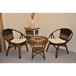 Ratanová sedacia súprava z prírodného ratanu. Súprava sa skladá z jedného kresla a stola. | Sedacia súprava Moon je vyrobená z veľmi pevného ratanu Croco v prírodnej farbe Rozmery ratanového kresla sú 73x65x76 cm Nosnosť kresla je 125 kg. Výška sedadla kresla je 42 cm Stôl má priemer 55 cm a je vysoký 55 cm Pohovka je vyrobená z kvalitného ratanového materiálu. Trojitá konštrukcia nôh stoličky zaisťuje vysokú pevnosť konštrukcie. Kreslá sú vyrobené ručne a kvalita a tvar ratanového výpletu zaručujú veľmi pohodlné sedenie.