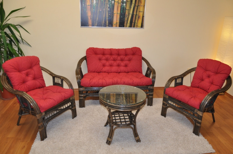 Ratanová sedacia súprava Rio De Janeiro hnedá bordová čalúnená