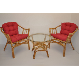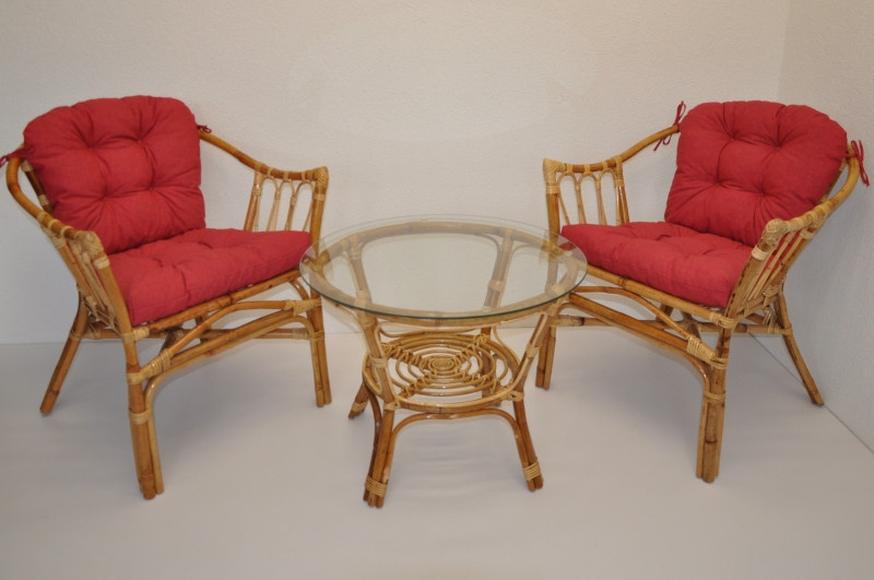 Ratanová sedacia súprava Subaliu sa skladá z dvoch kresiel, stolíka so sklenenou doskou a sady podušiek. | Ratanová sedacia súprava Subaliu je vyrobená z prírodného ratanu semambo, ktorý sa vyznačuje vysokou pevnosťou a stálosťou. Veľkosť kresla je 65x67x77 cm. Výška sedu kresla je 44 cm. Nosnosť kresla je 115 kg. Veľkosť stolíka so sklenenou doskou je: priemer 60 cm, výška 51 cm. Polstre na túto sedaciu súpravu sú vyrobené v Slovenskej republike. Polstre sú vyrobené z kvalitnej látky a vyznačujú sa vysokou kvalitou spracovania.Polstre pre nás vyrába firma AXIN Cuschions s.r.o., ktorá zamestnáva výhradne miestne vyučené krajčírky zo Slovenskej republiky. Týmto spôsobom sa snažíme podporovať výrobu a zamestnanosť v našej republike. Náplň podušiek je drvený molitan a podušky je možné prať ručne na 40o C. > >>