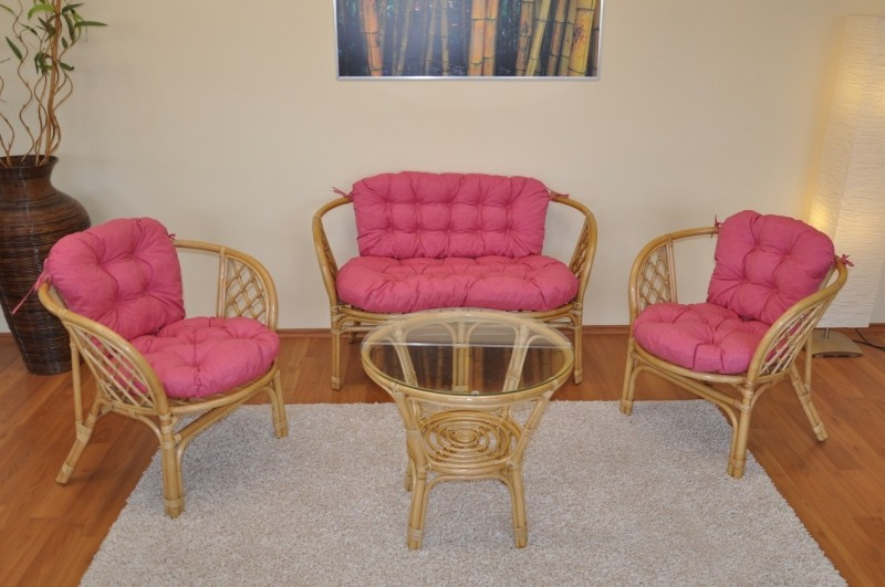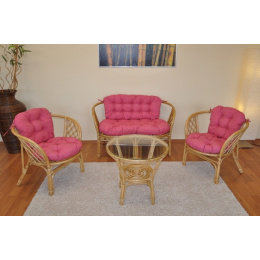 Ratanová sedacia súprava Bahama medová veľká podušky malinový melír